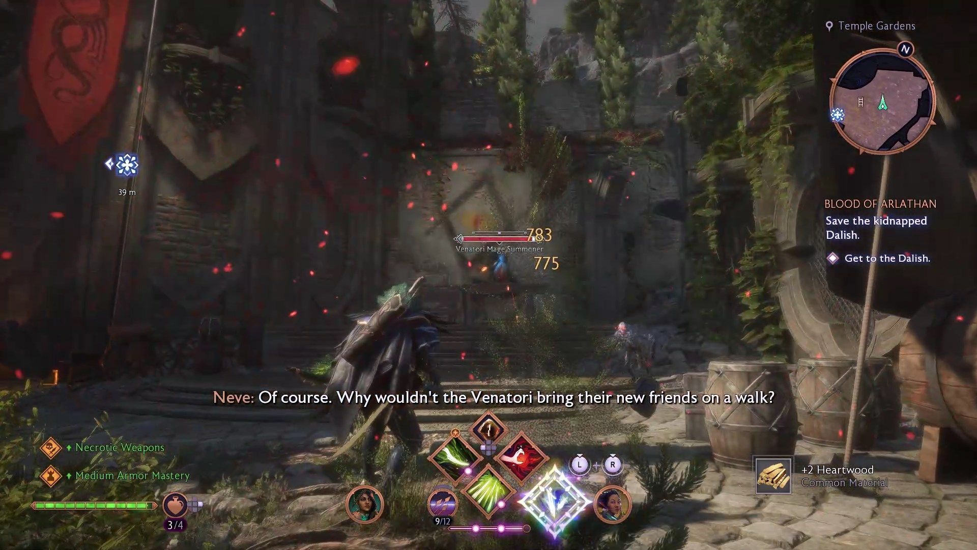 Po przerywniku filmowym będziecie musieli przedrzeć się przez świątynię. Droga naprzód jest liniowa - po drodze walczcie z Venatori aż nie traficie do ogrodów świątynnych. Tam stawicie czoła pomiotom.