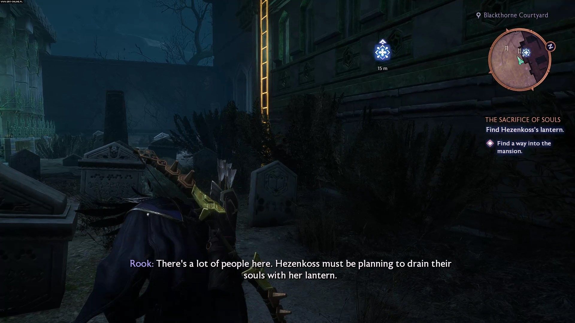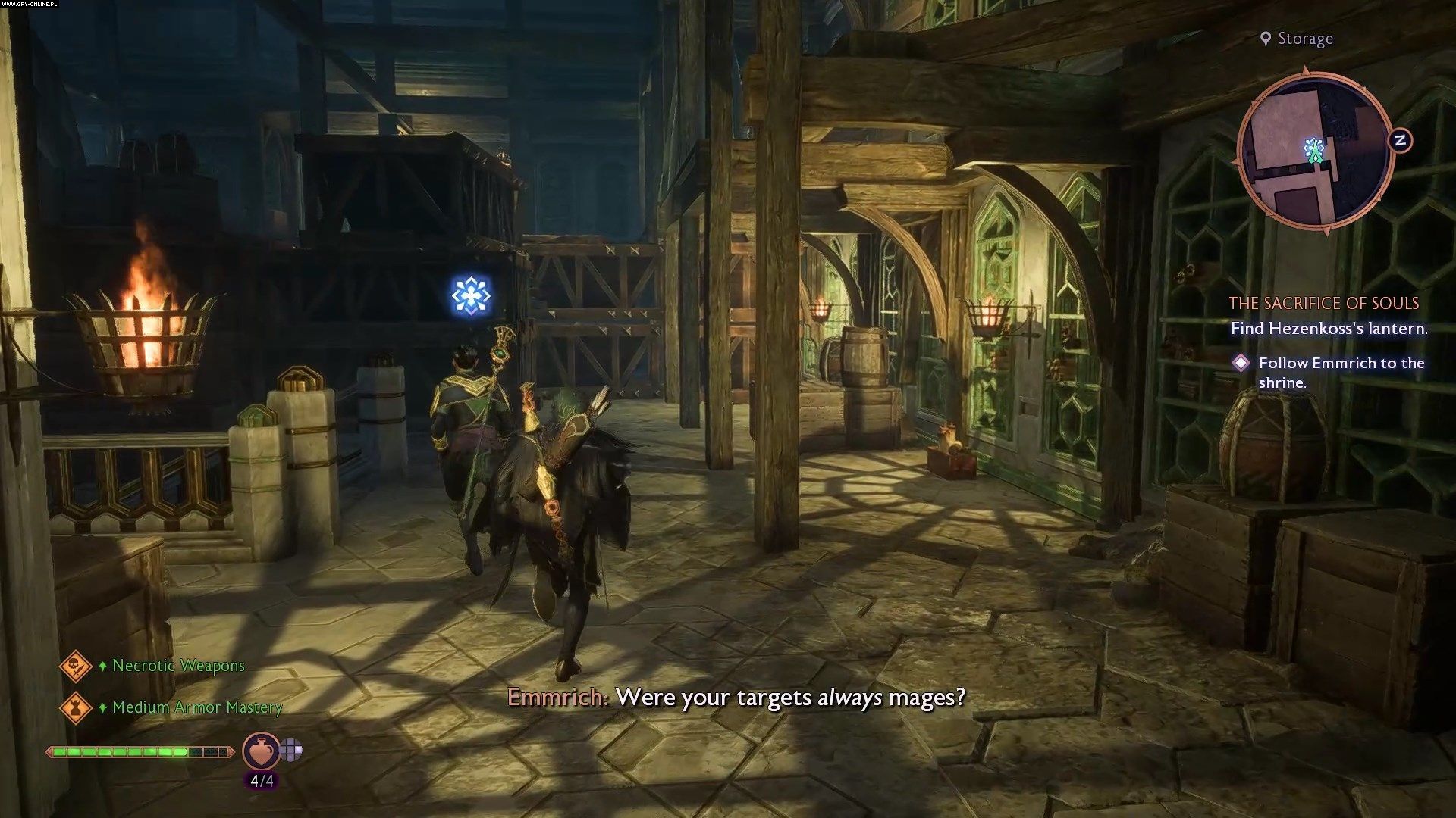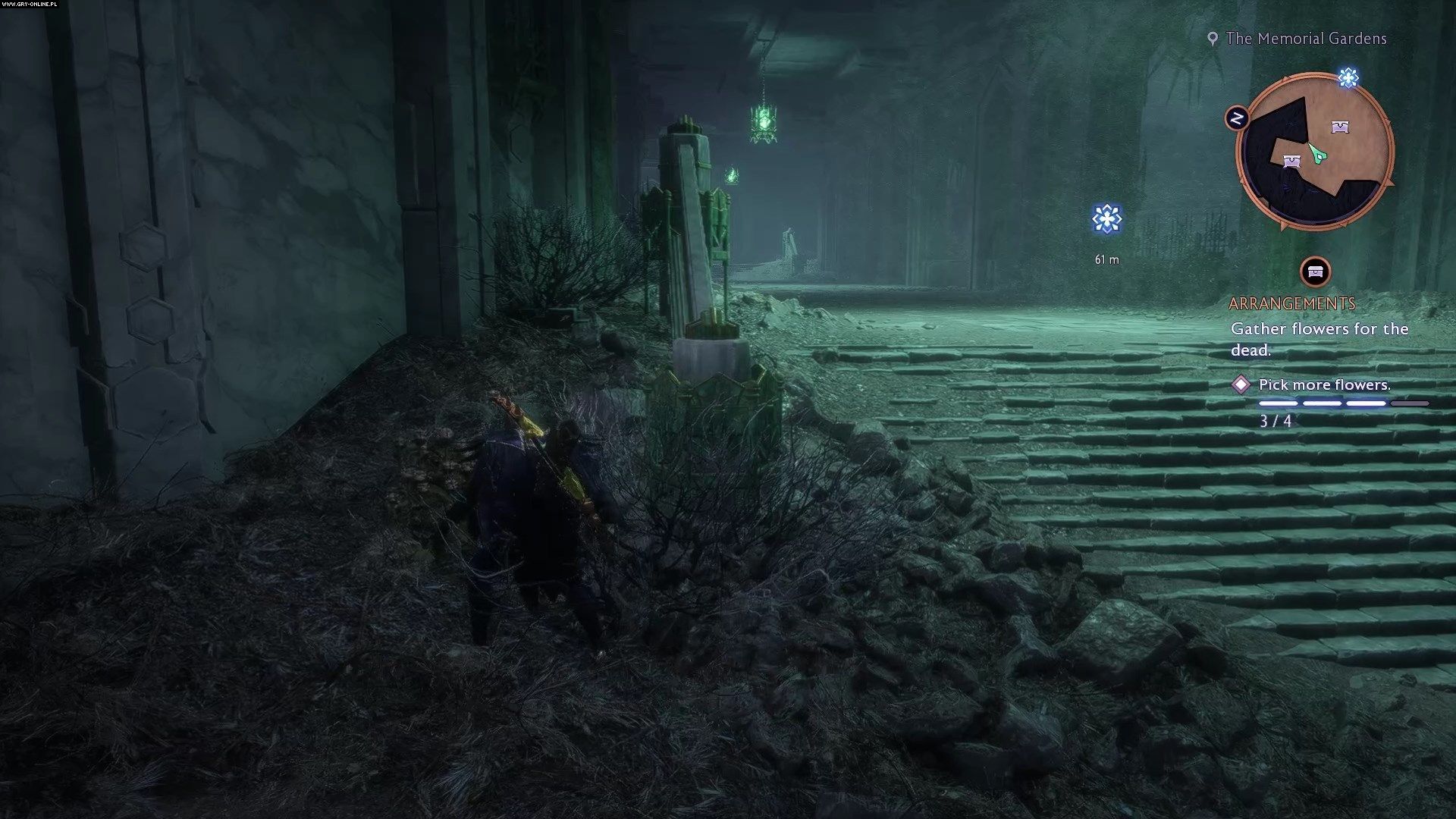 Traficie do ogrodów Nekropolii. Podczas dialogów polecamy Wam wybierać opcje dialogowe komplementujące poglądy Emmricha oraz takie, które z szacunkiem odnoszą się do duchów zamieszkujących okolicę. Poprawi to Wasze relacje z nekromantom.