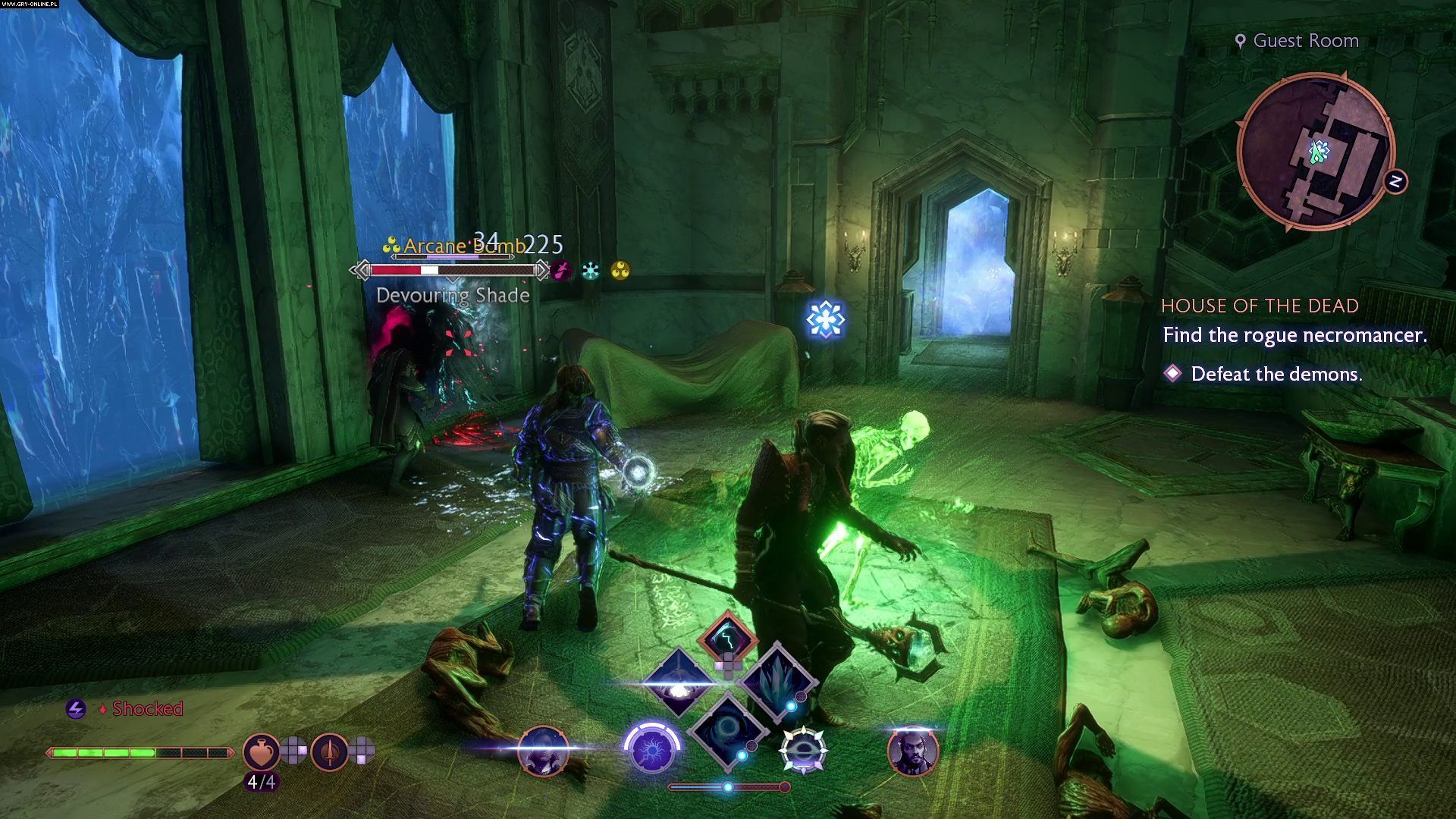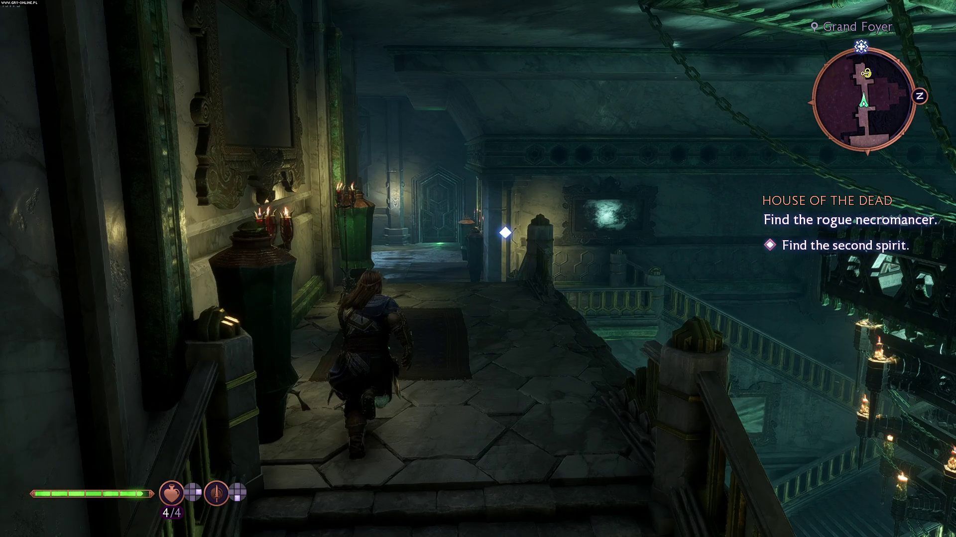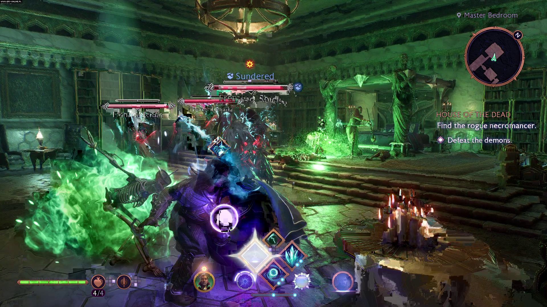 Na końcu korytarza znajdziecie sypialnię z miejsce demonicznego rytuału. Pokonajcie zjawy które pojawią się w pokoju chwilę później (duchy wrażliwe są na obrażenia od mrozu).