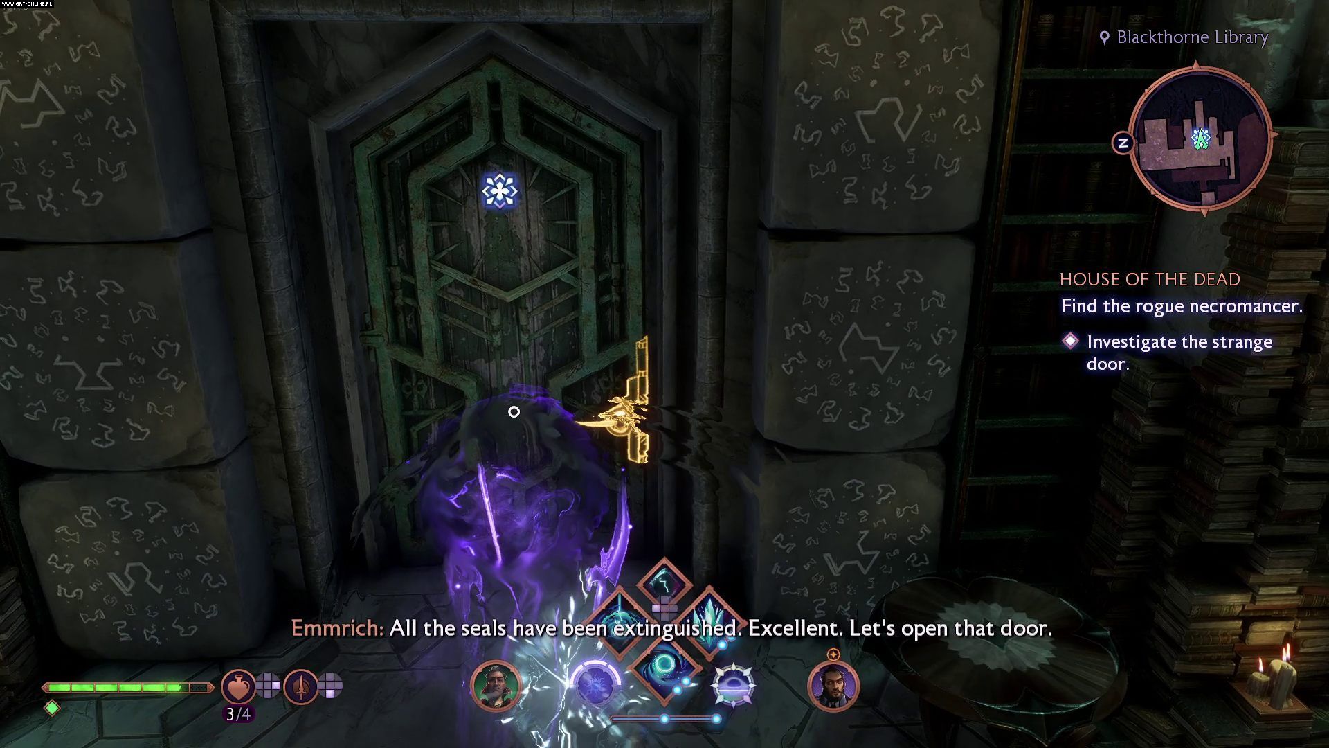 Poczekajcie, aż Emmrich odczaruje miejsce rytuału, a następnie udajcie się do kolejnych drzwi zamkniętych na klucz. Znajdują się one na pierwszym piętrze, na prawo od wejścia do posiadłości (pomieszczenie z wielkim żyrandolem).