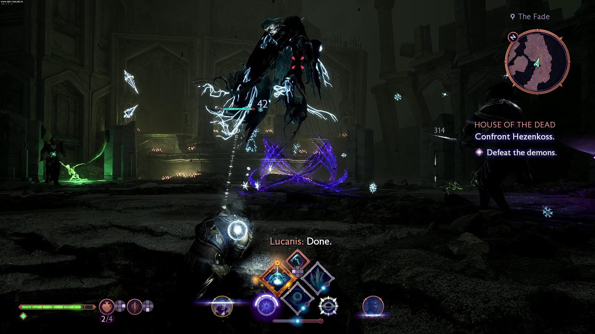 - Uważajcie na dystansowe ataki w postaci fioletowych wiązek. Te niekiedy przechodzą przez filary oraz inne przeszkody na arenie;