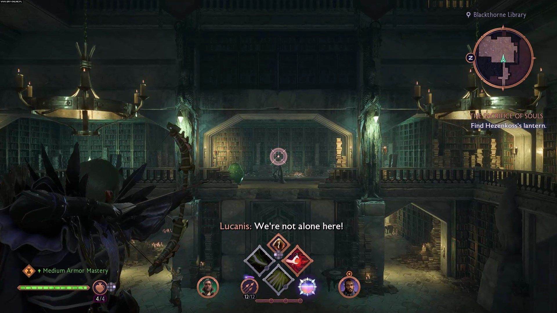 Gdy już dostaniecie się do dworu, udajcie się na balkon. Tu chwilę poczekajcie, obserwując Manfreda. Podsłuchacie rozmowę, która nakieruje was do biblioteki. Tam musicie pozbyć się wrogów i znaleźć specjalną księgę, która leży na małym stoliku na klatce schodowej. Zanieście księgę Manfredowi.