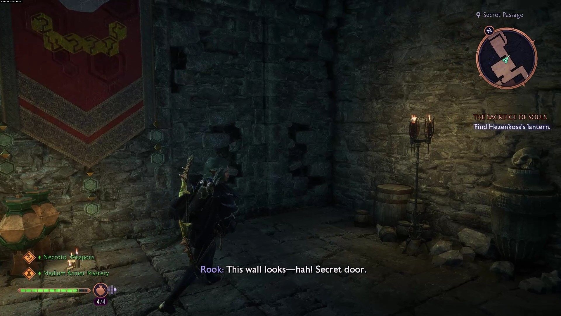 Raz jeszcze udajcie się na balkon - po chwili dowiecie się, gdzie iść dalej. Podążajcie za Emmrichem, a po cutscence idźcie dalej liniową ścieżką, w której wiszą czerwone gobeliny. Gdy dotrzecie do wypełnionego dźwigniami pomieszczenia na końcu, zbadajcie ścianę obok czerwonego gobelinu by znaleźć sekretne przejście.