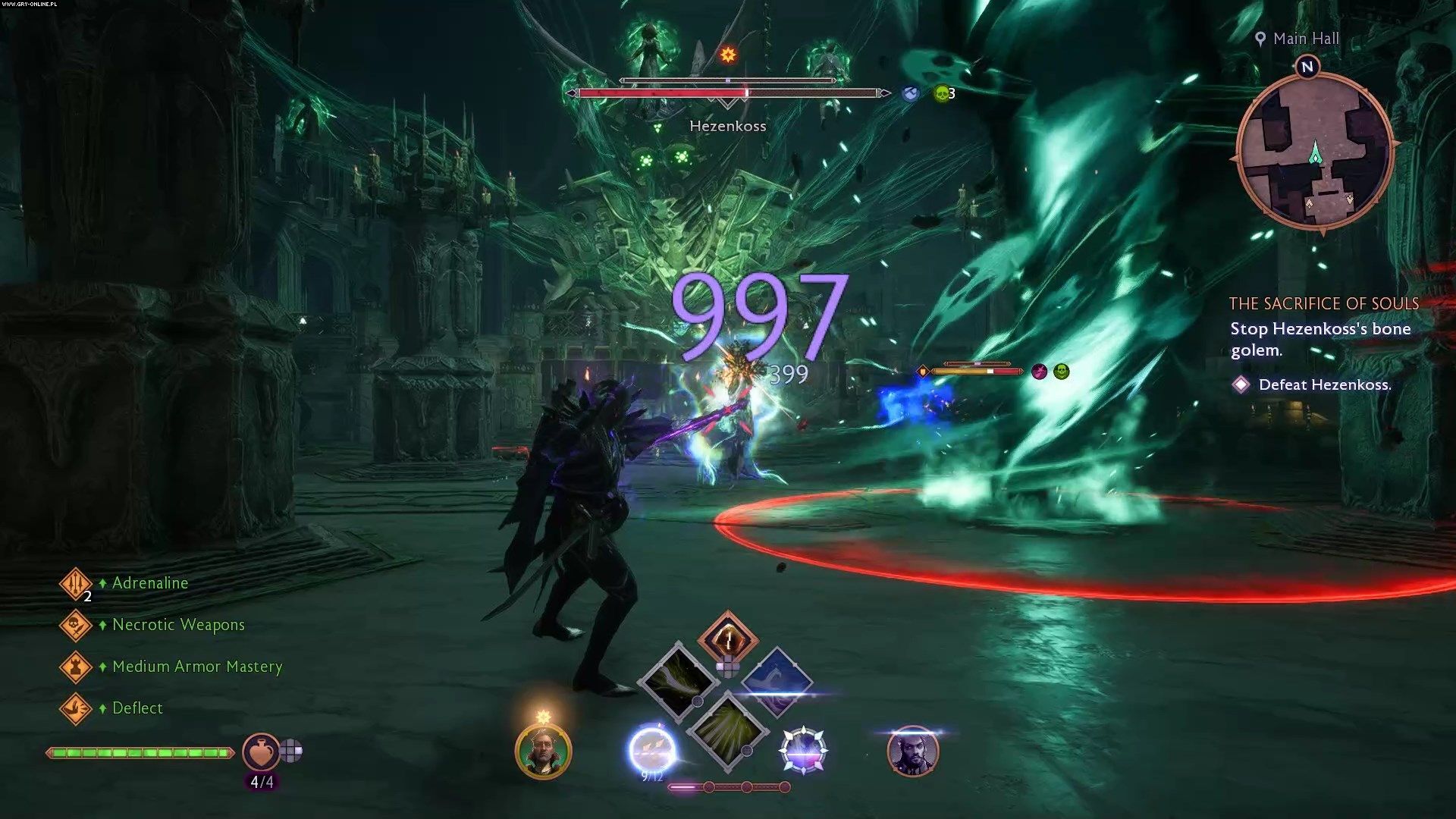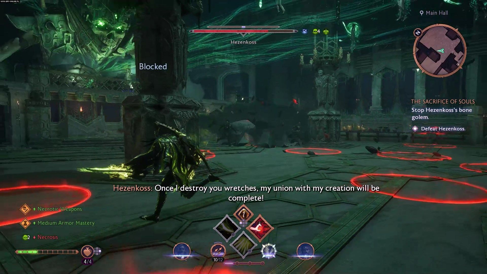 Po krótkiej sekwencji platformowej spotkacie się z Hezenkoss - nekromantką i dawną przyjaciółką Emmricha. Po dłuższym przerywniku filmowym zaatakuje Was spora grupa przeciwników. Polecamy Wam najpierw zająć się stojącymi z tyłu wrogami atakującymi na odległość.