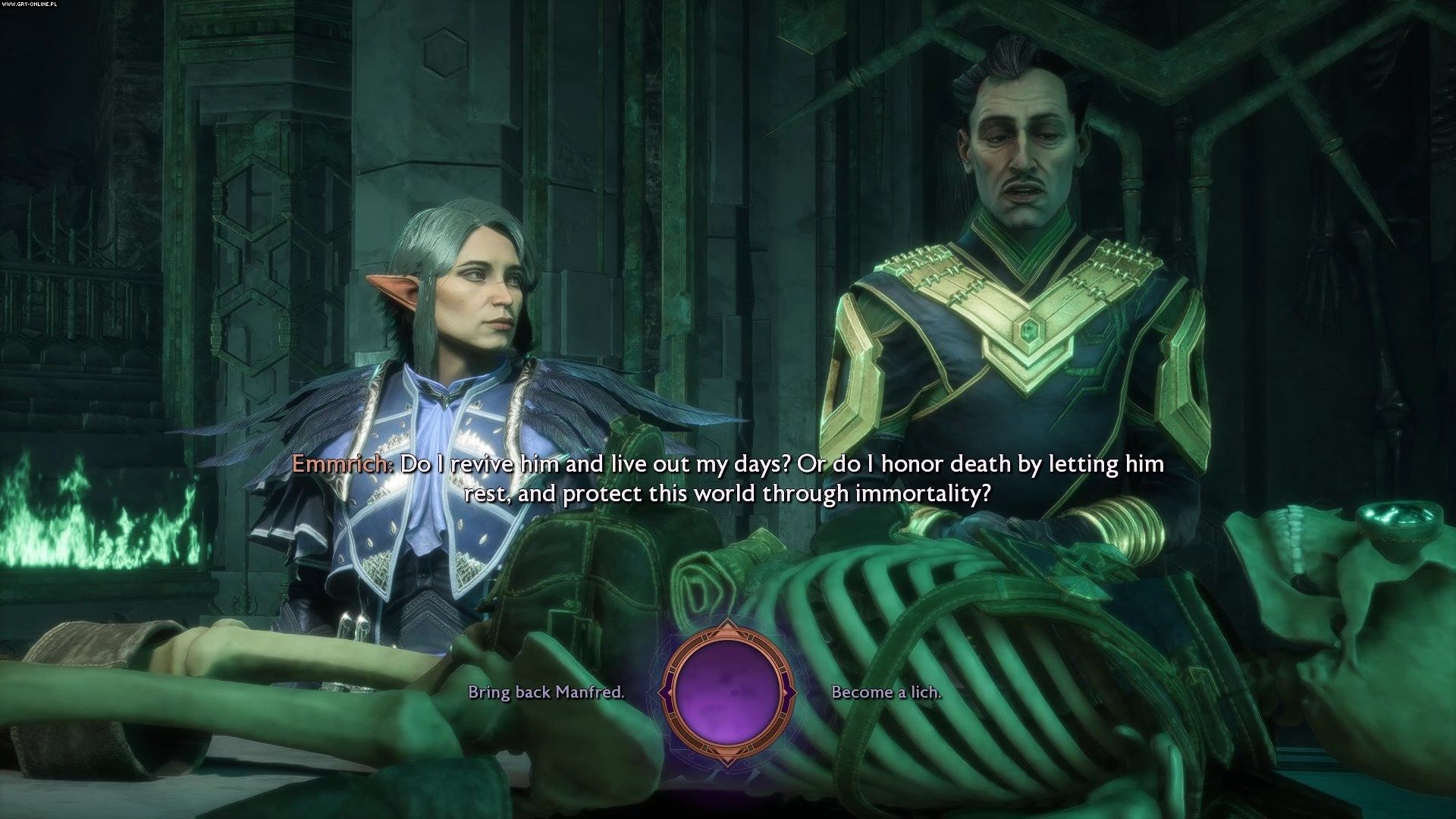 Po walce czeka was ostatnia decyzja. Emmrich może uhonorować poświęcenie Manfreda i zostać liszem lub poświęcić swoje marzenie by przywrócić Manfreda do życia.