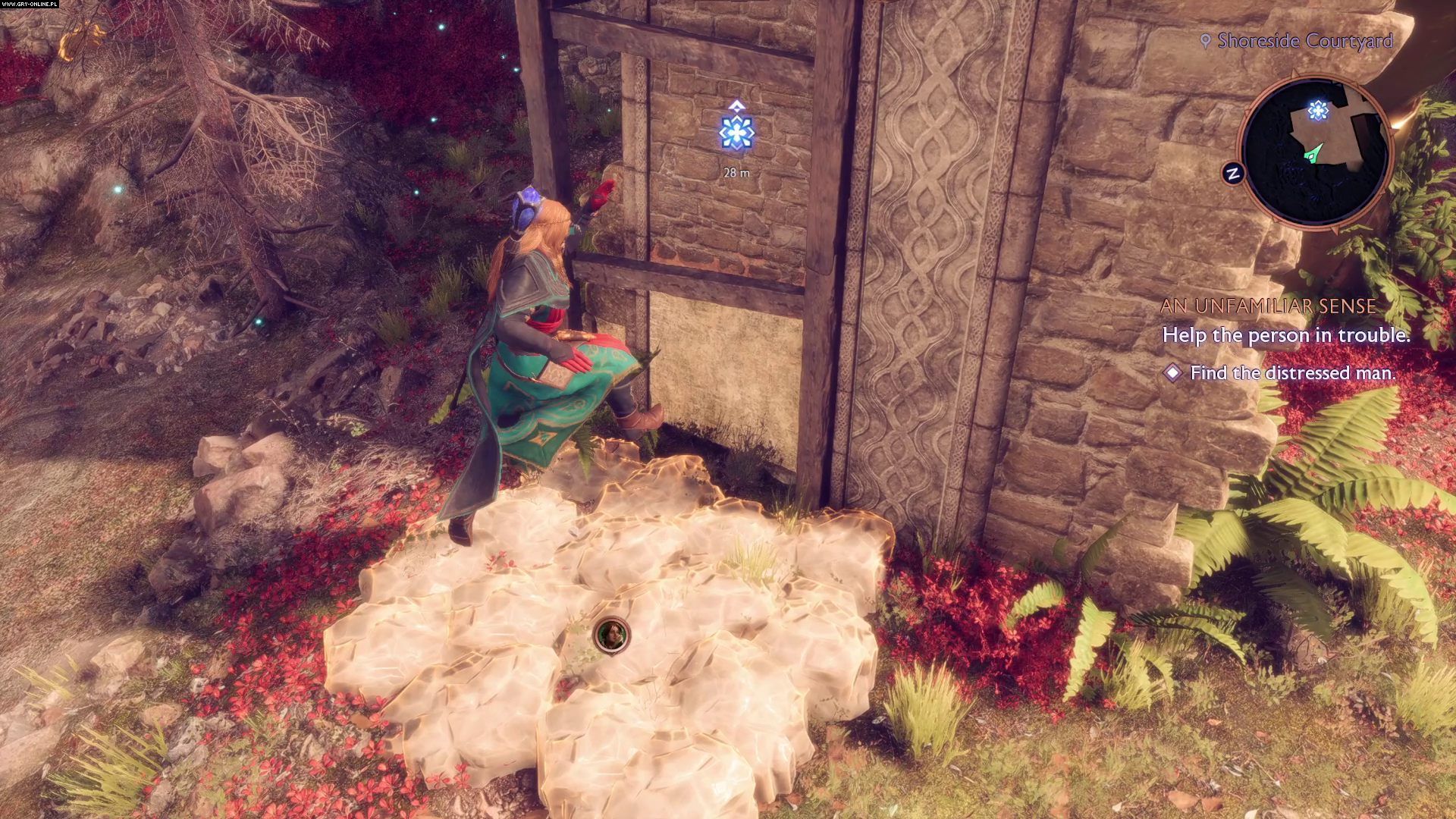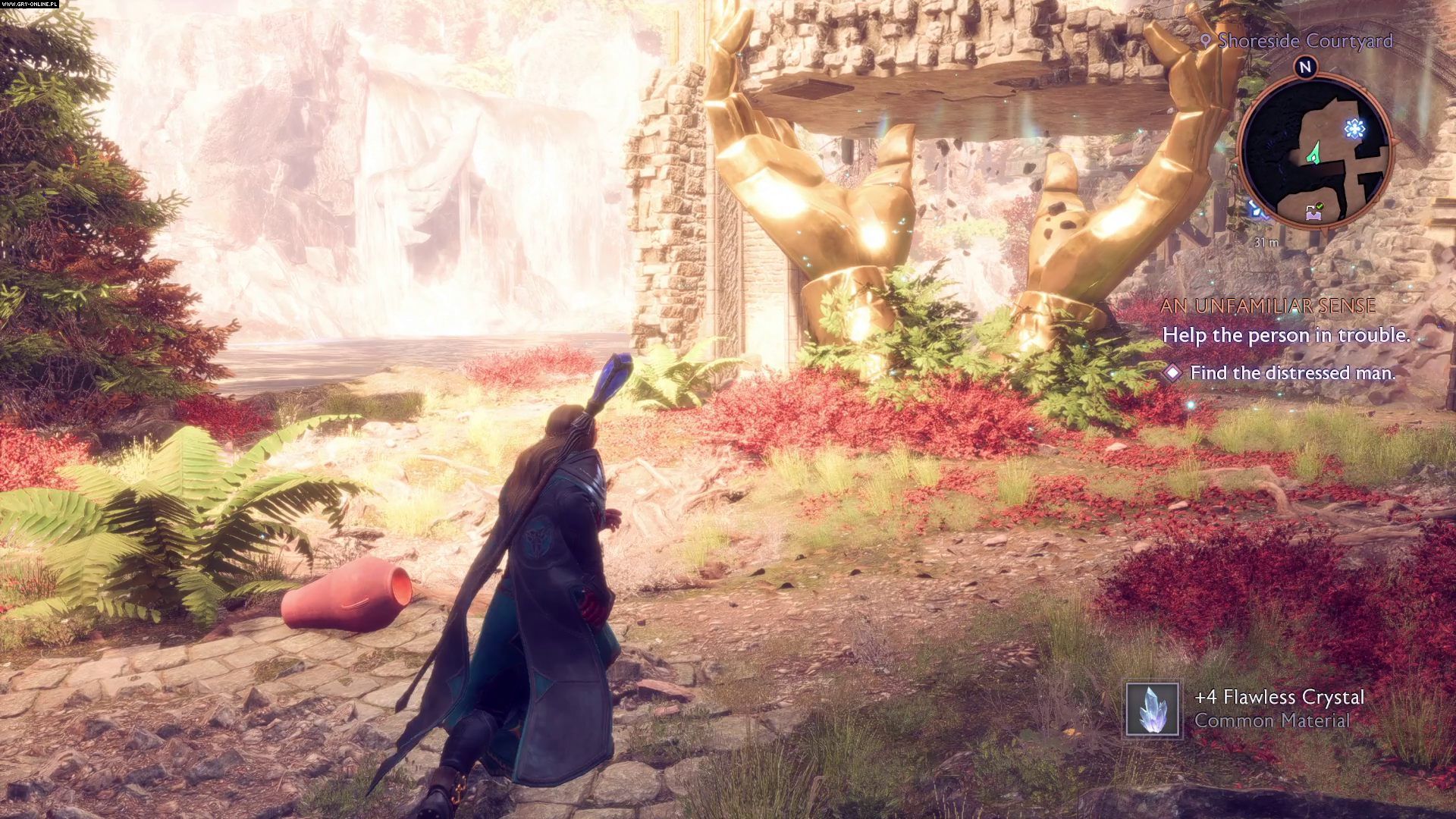Gdy gra poprosi Was o odnalezienie krzyczącego mężczyzny w tarapatach, obejdźcie posąg kamiennych dłoni i aktywujcie skalną platformę za nimi.