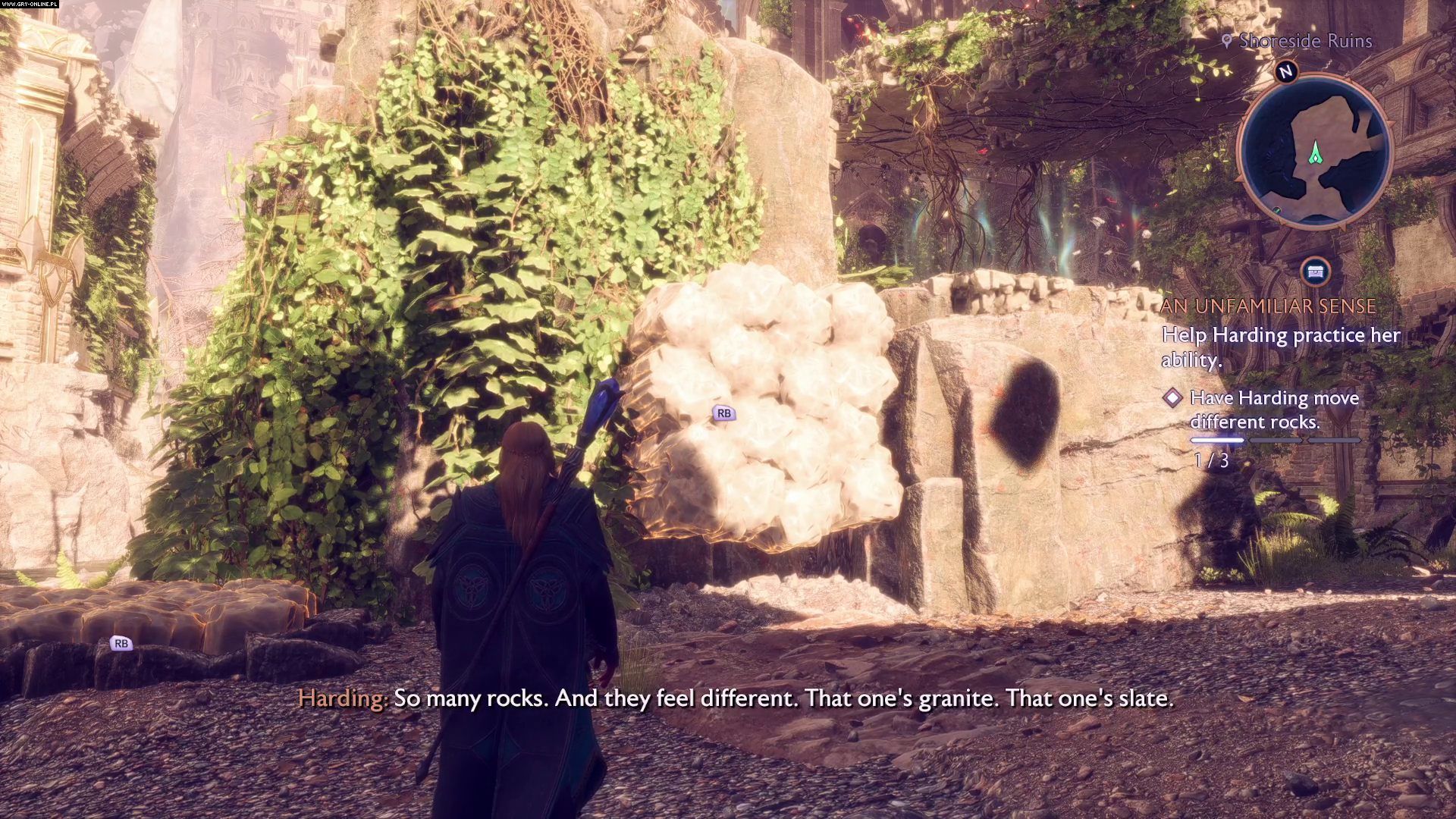 Po rozpoczęciu właściwej części zadania podążajcie za Harding. Po krótkiej rozmowie zwiadowczyni opanuje umiejętność manipulowania skalnymi półkami, co przyda się podczas eksploracji. Więcej na temat wydawanie poleceń towarzyszom znajdziecie na stronie Jak wydawać polecenia towarzyszom?.