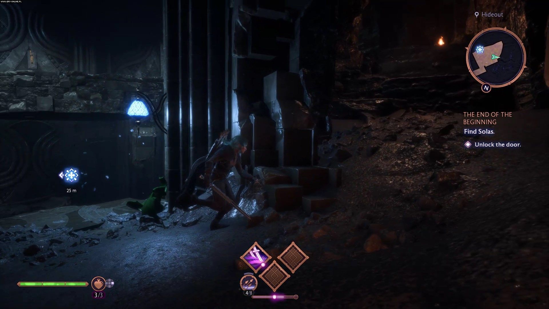 Po samouczku Neve otworzy drzwi do kryjówki Solasa. Wejdźcie do środka, wspinając się po skałach i idąc liniowym korytarzem aż do sporego pomieszczenia, gdzie zaatakuje was więcej wrogów.