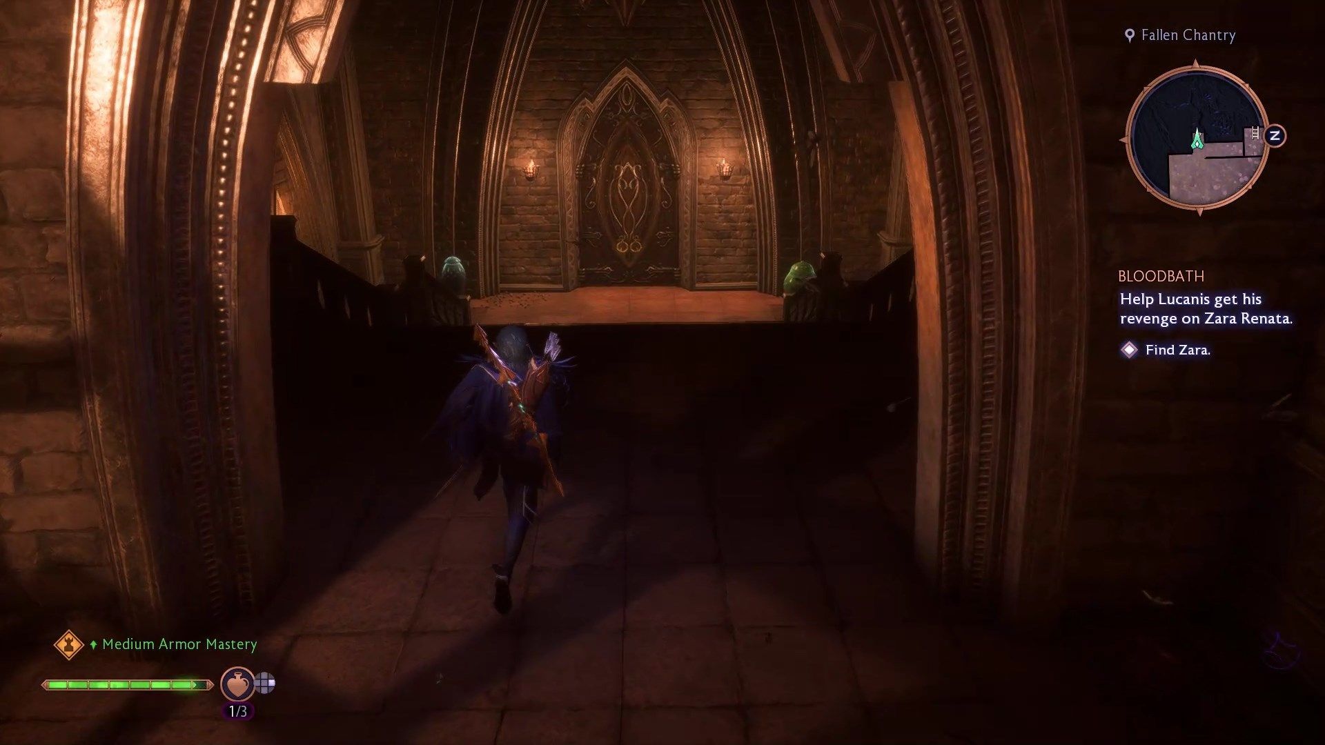 Zadanie rozpoczniecie podążając za Lucanisem. Po rozmowie z Illariem idźcie dachami aż na plac zakonu. Wejdźcie do środka głównymi drzwiami. Droga przez zakon jest w całości liniowa i nie sposób się tu zgubić, po drodze będziecie musieli jednak stawić czoła trzem mini-bossom.