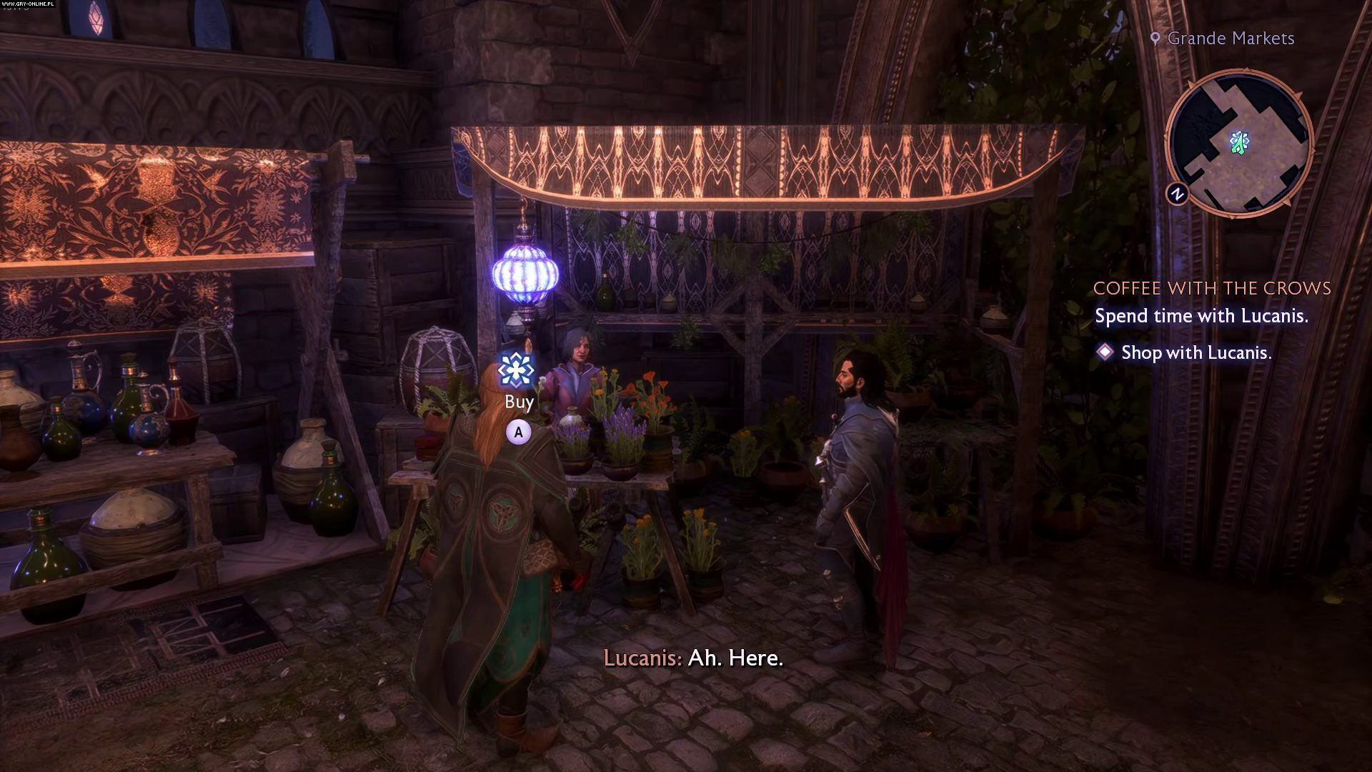 Po zakupach możecie udać się od razu do kawiarni. Polecamy Wam jednak wcześniej zahaczyć o jedno z bocznych stoisk podświetlonych przez wskaźnik misji, by wykonać opcjonalne zadanie. Jeżeli kupicie Lucanisowi upominek, pozytywnie wpłynie to na relacje między Wami.