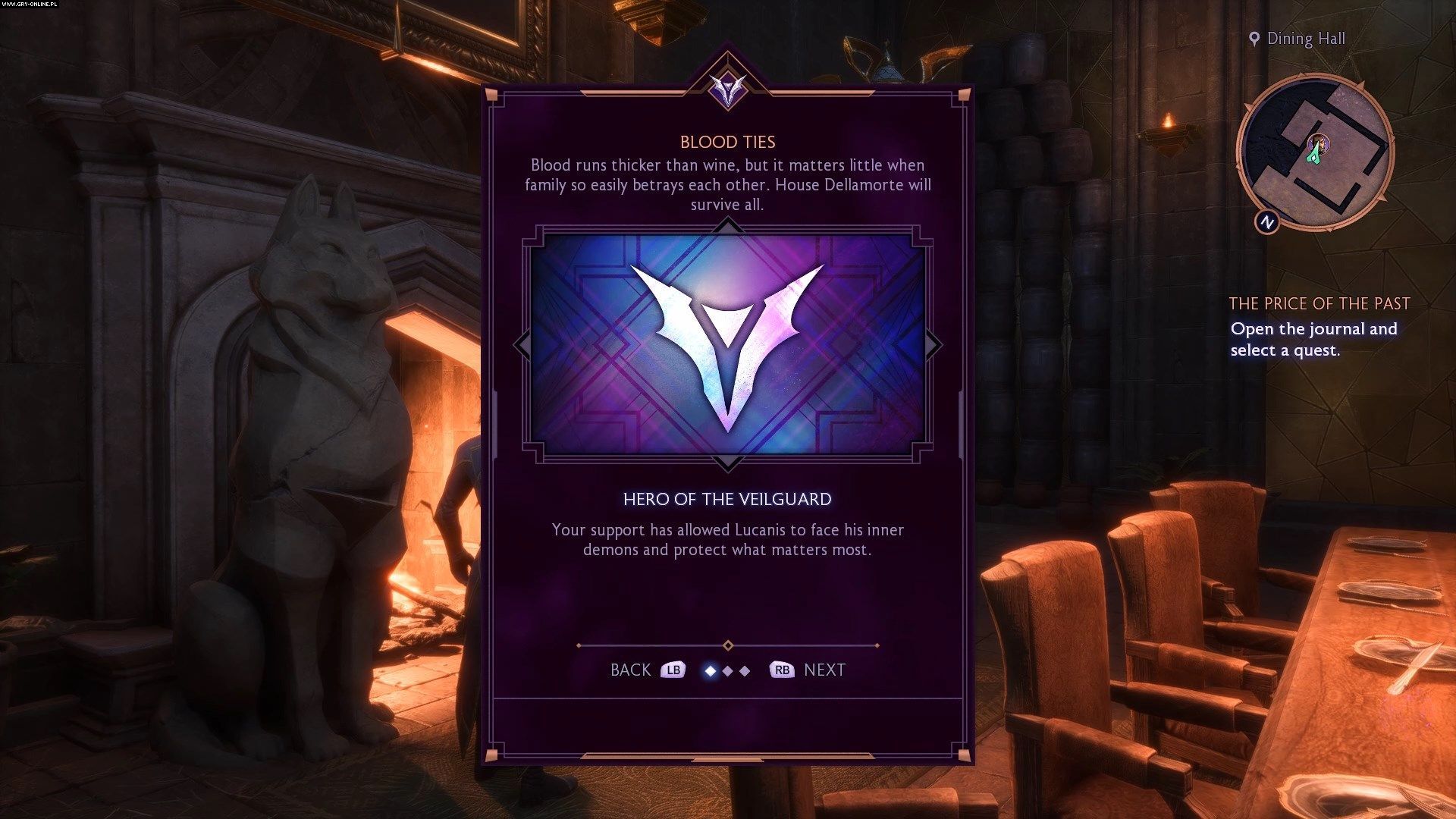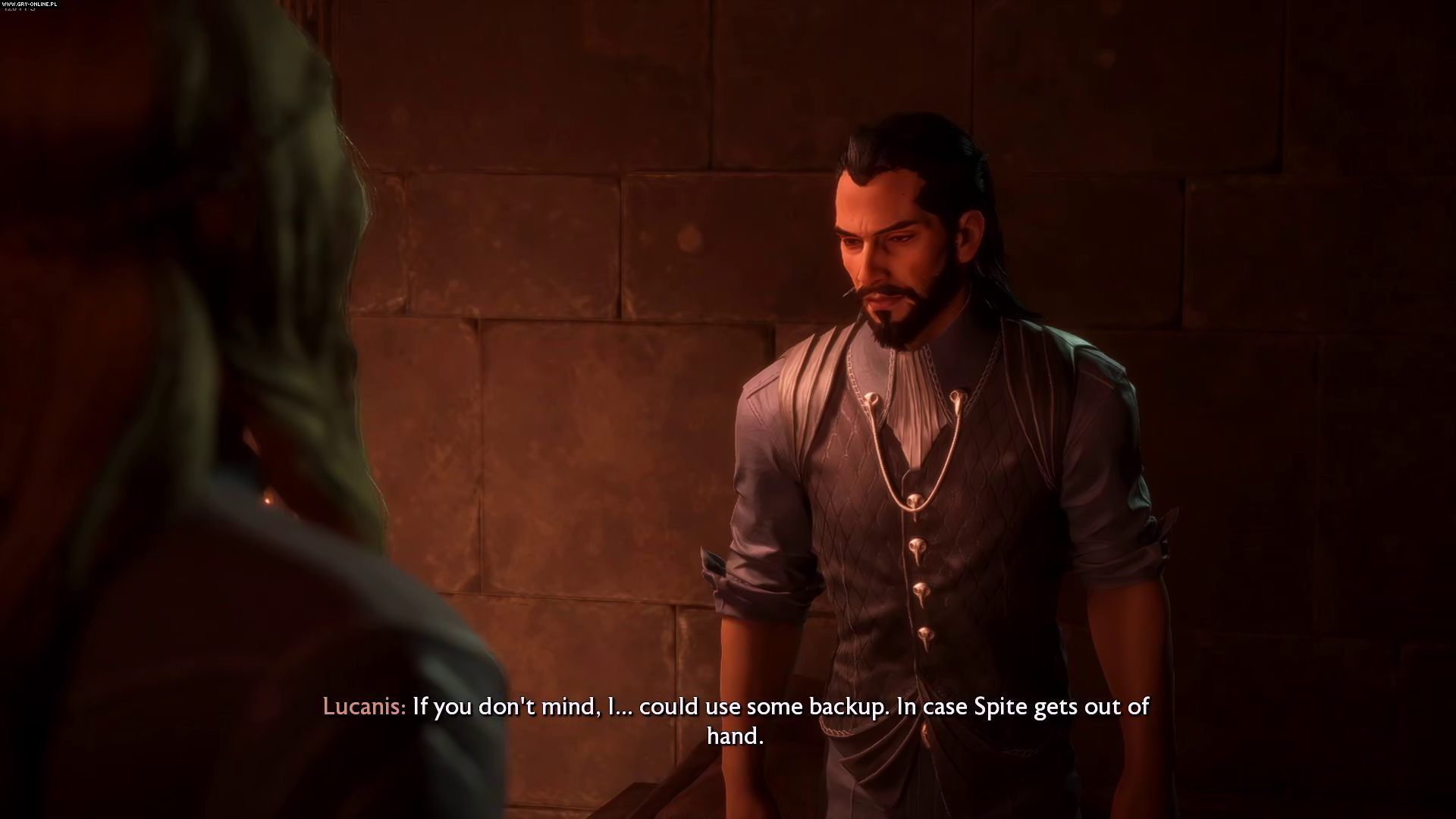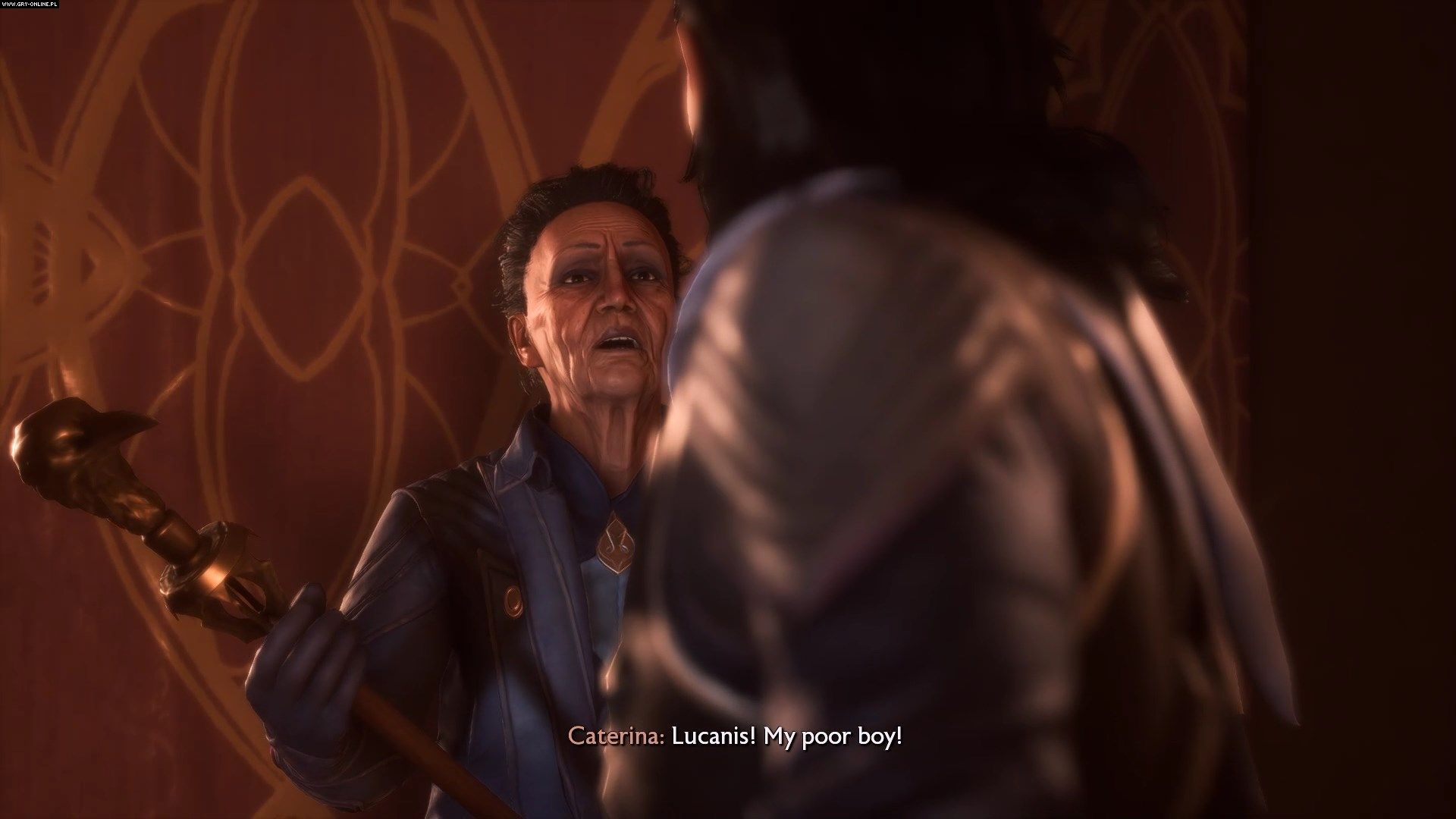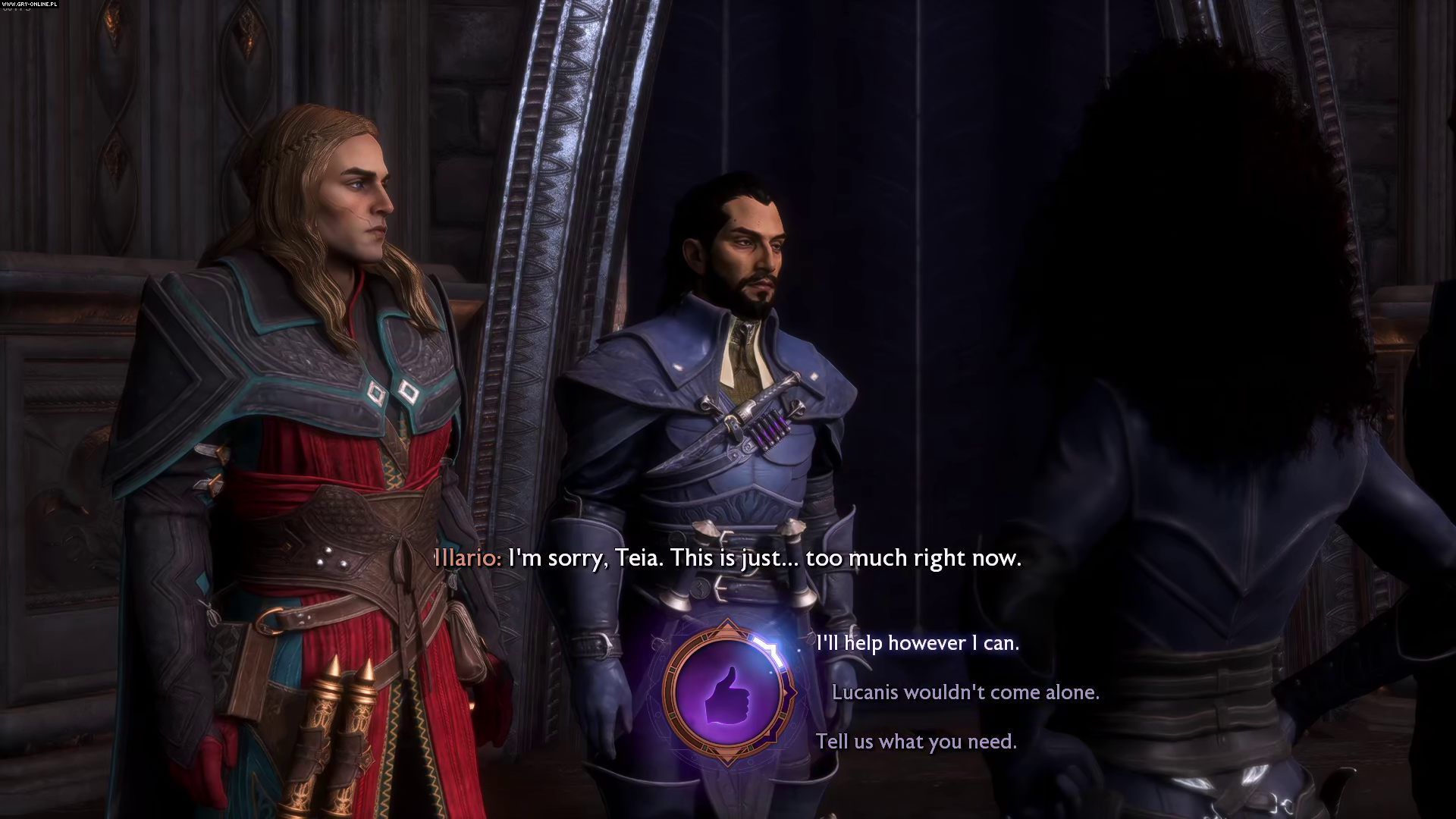 Po dokonaniu wyboru zakończycie zadanie. Musicie teraz poczekać na ostatnią konwersację z Lucanisem, do której w naszym wypadku doszło tuż przed punktem bez powrotu. Konwersacja ta zakończy wątek. Towarzysz otrzyma tu status Chluby Straży Zasłony - jego zdobycie sprawi, że lepiej poradzi sobie w zadaniu, do jakiego możecie go przypisać podczas przedostatniego questu fabularnego.