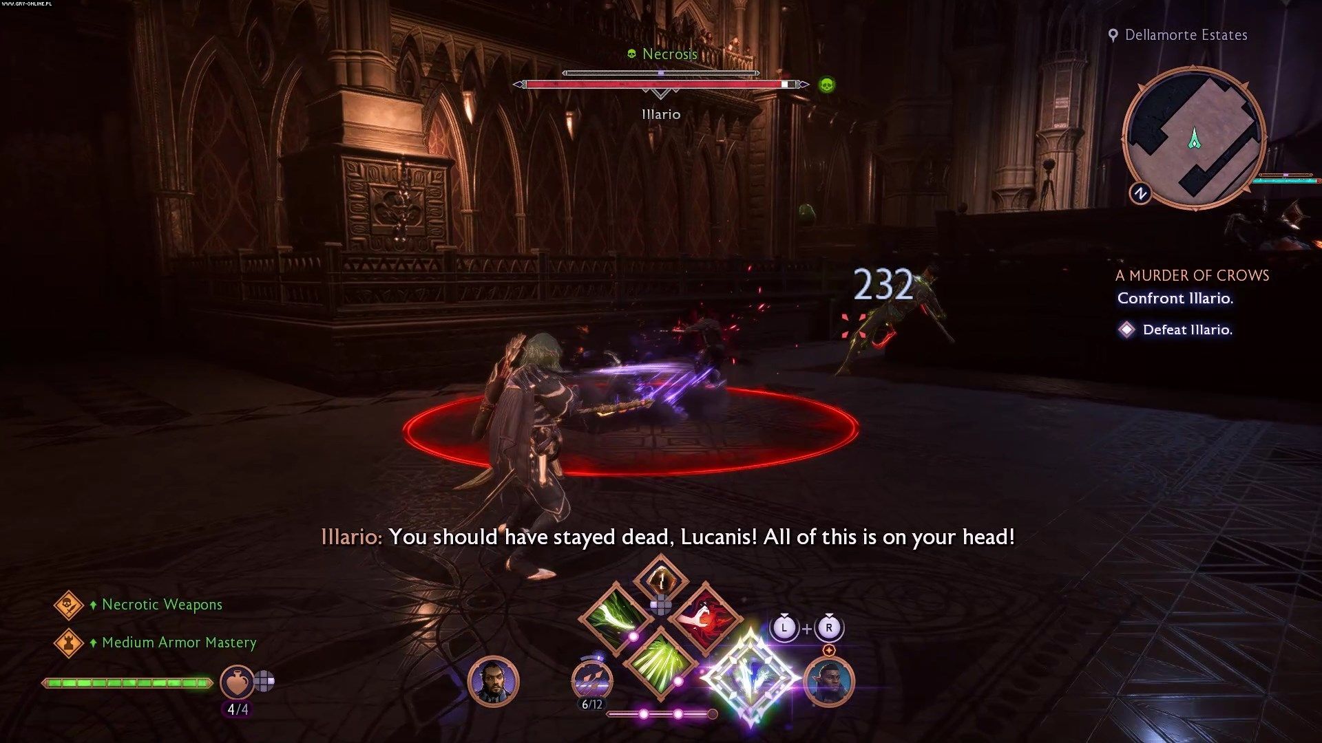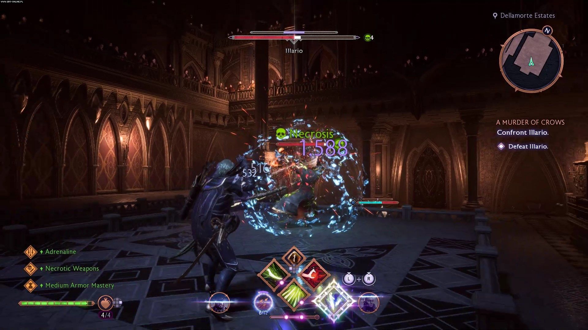 Illario nie powinien sprawić wam żadnych problemów - jest nieco ulepszonym katem Venatori walczącym dwoma kosami, tak jak Zara Renata w poprzedniej misji. Nie posiada jednak jej magii, więc w porównaniu z nią jest znacznie mniej niebezpieczny. Uważajcie na lekko opóźnione cięcia kosami oraz unikatowy dla Illaria odskok, po którym tworzy niewielką eksplozję. Okazjonalnie Illario może się teleportować - podczas gdy jest nieobecny, pozbądźcie się magów ostrzeliwujących was ze sceny. Gdy już pozbędziecie się zwykłych wrogów, sam Illario okaże się bardzo prosty do przytłoczenia.