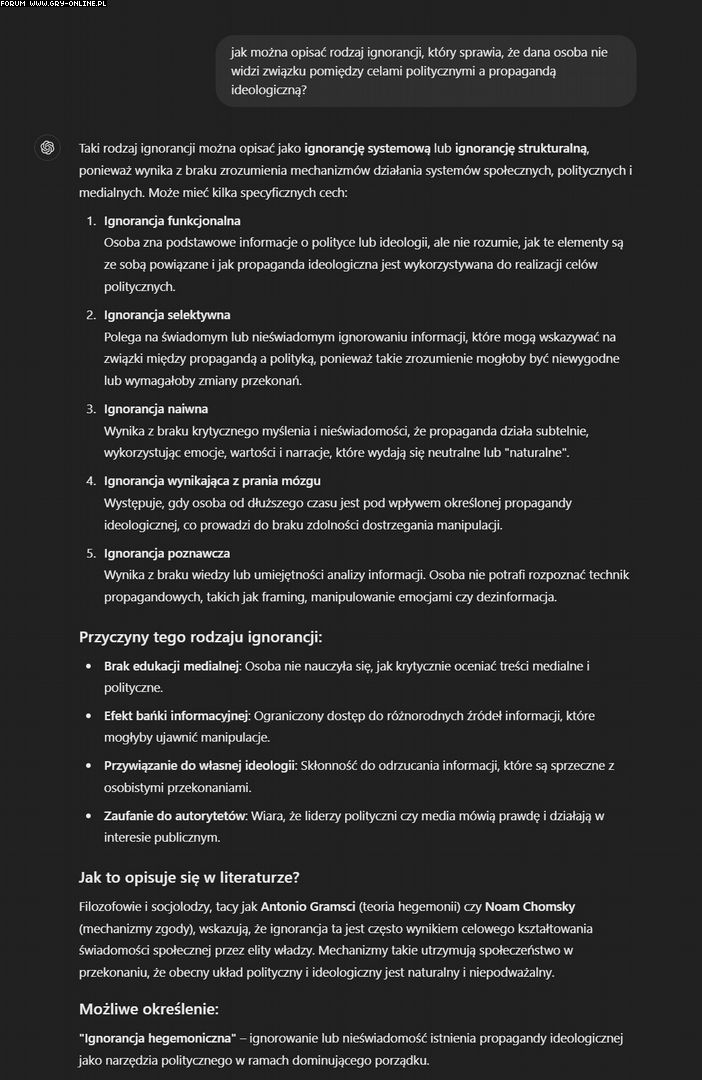 No toś teraz dowalił do pieca geniuszu xDD 4 dni kminiłeś jakby tutaj podpiąć tego "politycznego gniota" pod propagandę ideologiczną (którą Veilguard w wielu momentach faktycznie epatuje) i nie wymyśliłeś NIC więc w akcie desperackiej bezsilności uciekłeś po pomoc do chatu gpt... Dawno nie widziałem tak żałosnego pokazu pustosłowia, serio. A wystarczyło po prostu przyznać, że Veilguard jest "ideologicznym gniotem", a nie "politycznym". Nie brnij już w tą durną narrację, błagam cię. Chociaż tak patrząc po twoich komentarzach to ty już dawno oszalałeś od tej wojenki, którą prowadzisz głównie w swojej głowie. Aż mi cię trochę szkoda, być tak przesiąkniętym nienawiścią... To musi być ciężkie życie.