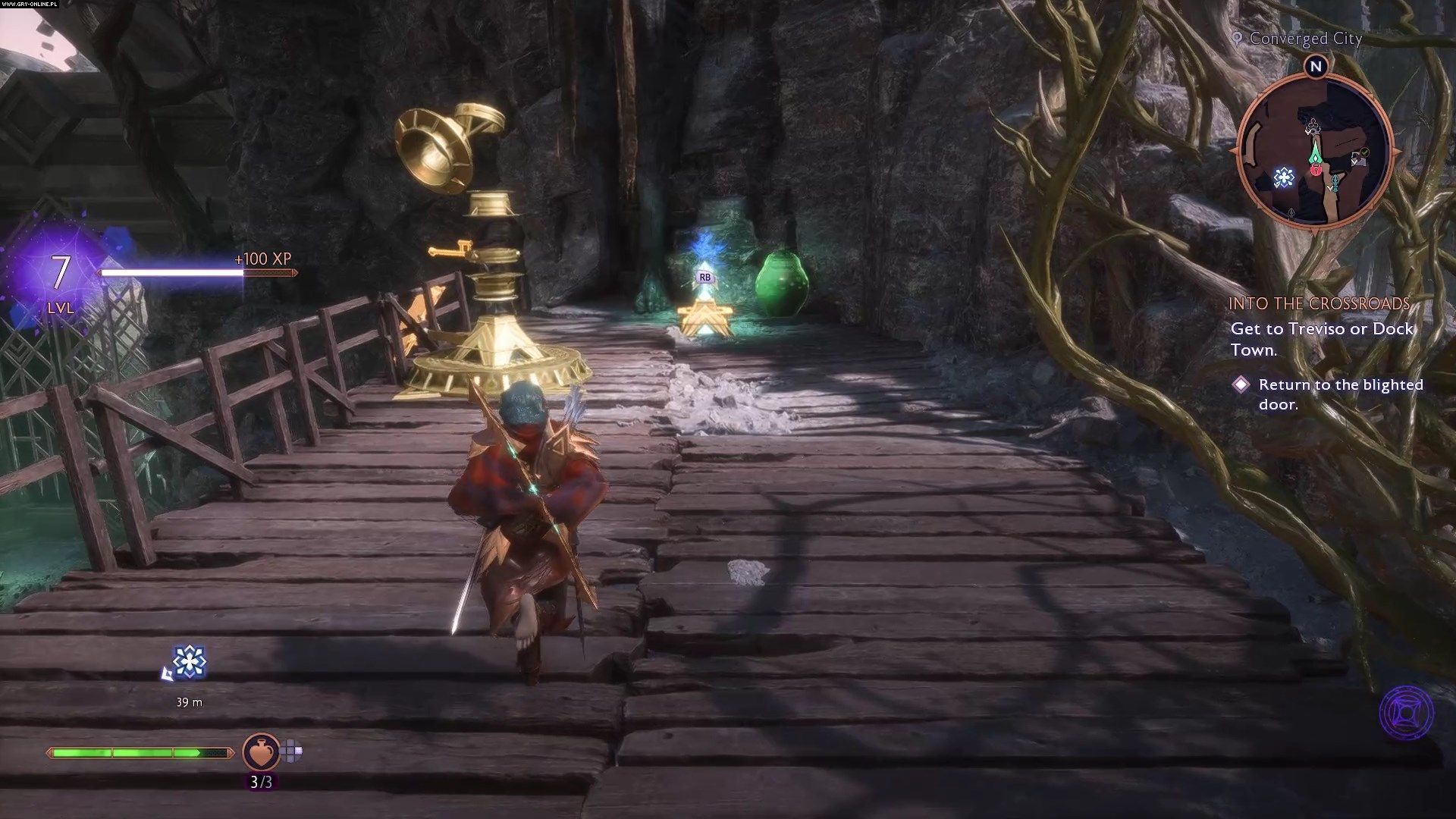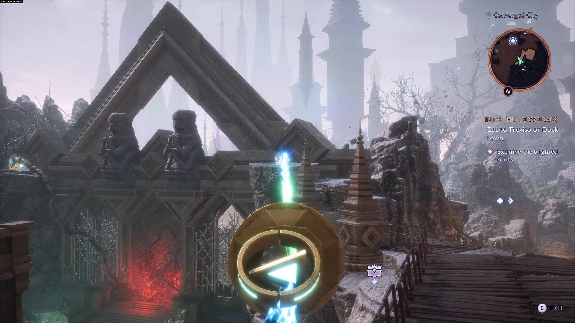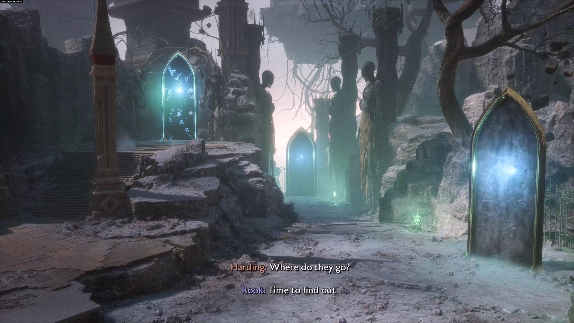 Zejdźcie znowu na centralny plac (skorzystajcie z drabiny tuż obok emitera) i użyjcie esencji czempiona na korzeniach by otworzyć bramę. Po drugiej stronie znajdziecie komnatę z eluvianami. Możecie teraz wybrać, czy najpierw udać się do Treviso czy do doków. To zakończy zadanie.