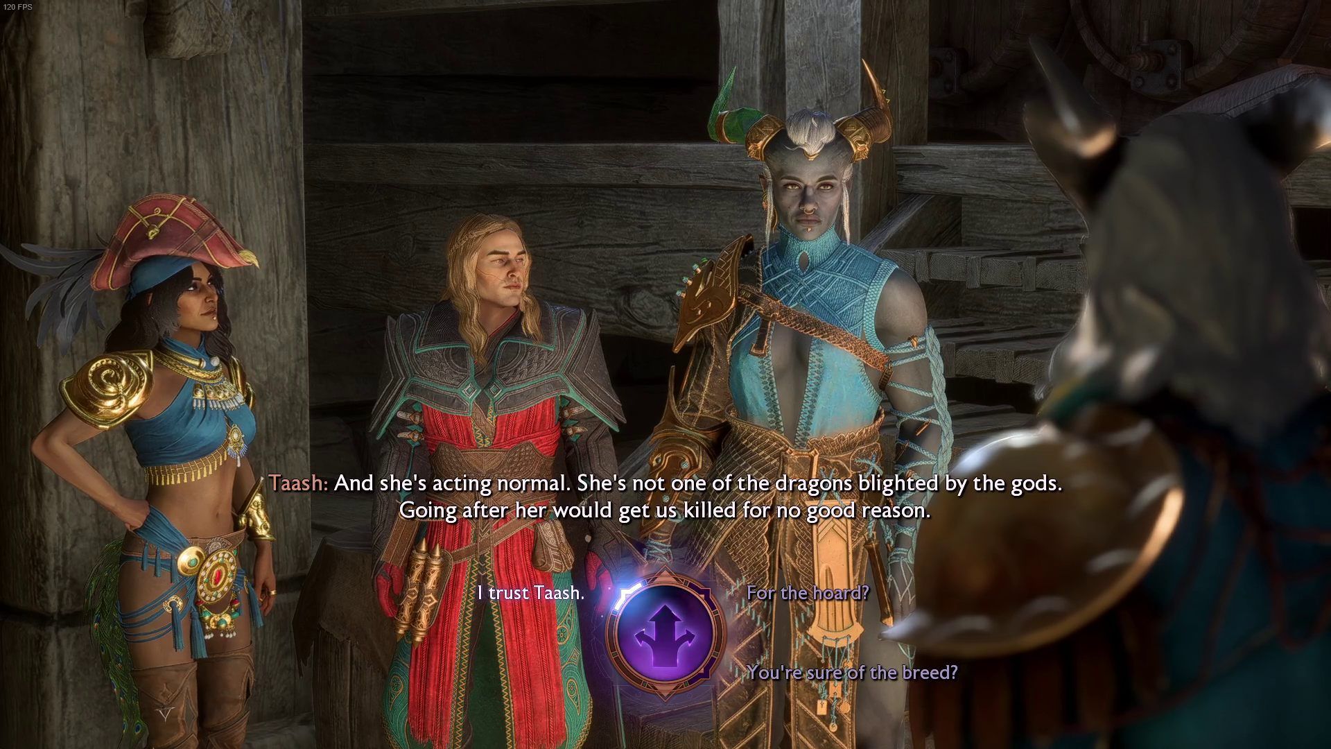 Po spotkaniu Taash na miejscu będziecie świadkami rozmowy z Cutterem. Emocjonalny wojownik nalegać będzie na zapolowanie na smoka Kaltenzahn. Polecamy Wam wybierać opcje dialogowe stające po stronie Taash. Zyskacie sobie w ten sposób jej sympatię.