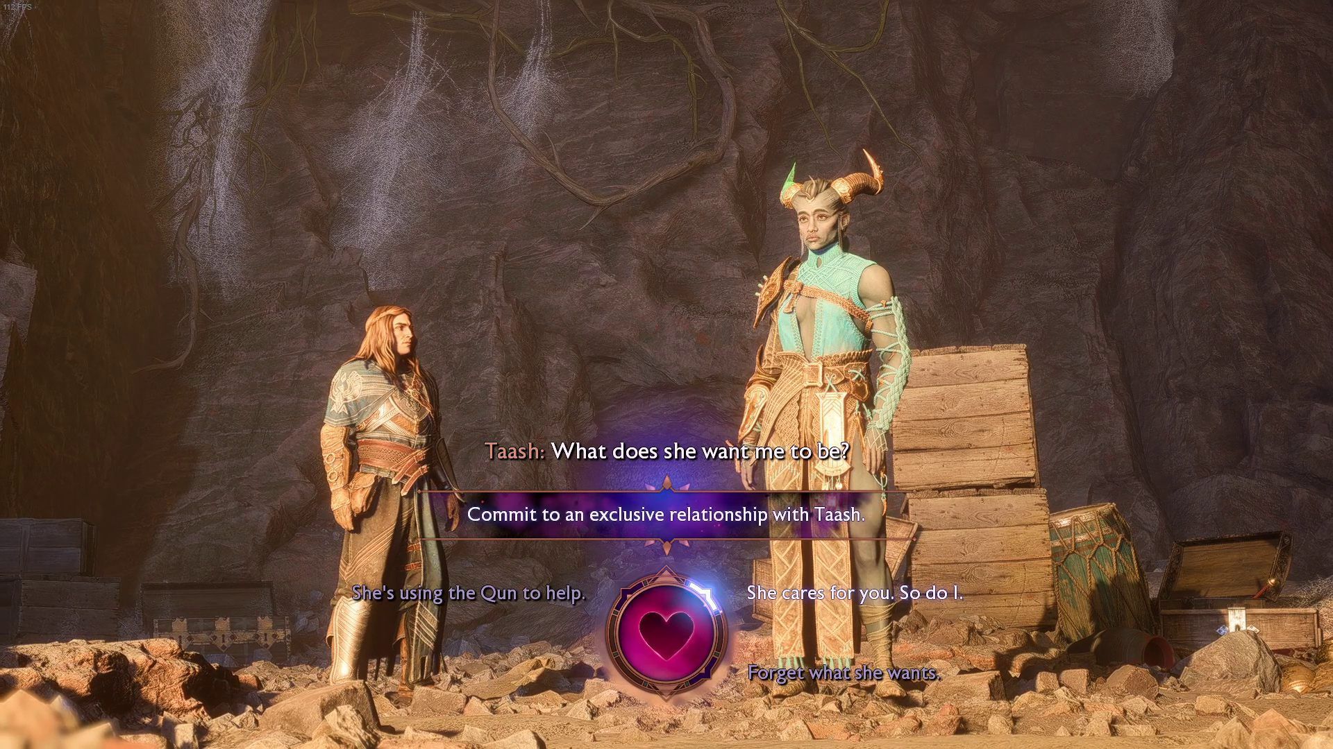 - Odrzucić zaloty Taash co ostatecznie zamknie Wasze możliwości romansowania z towarzyszu;