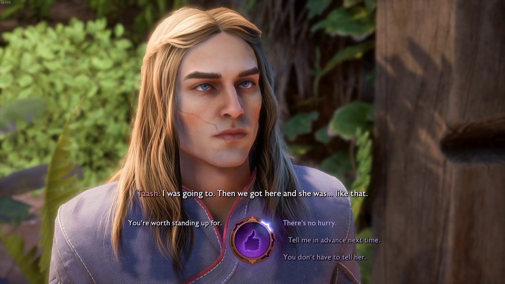 W czasie dość długiego przerywnika filmowego, Taash będzie kwestionować swoją tożsamość. Możecie okazać jej wsparcie, co poprawi Waszą relację.