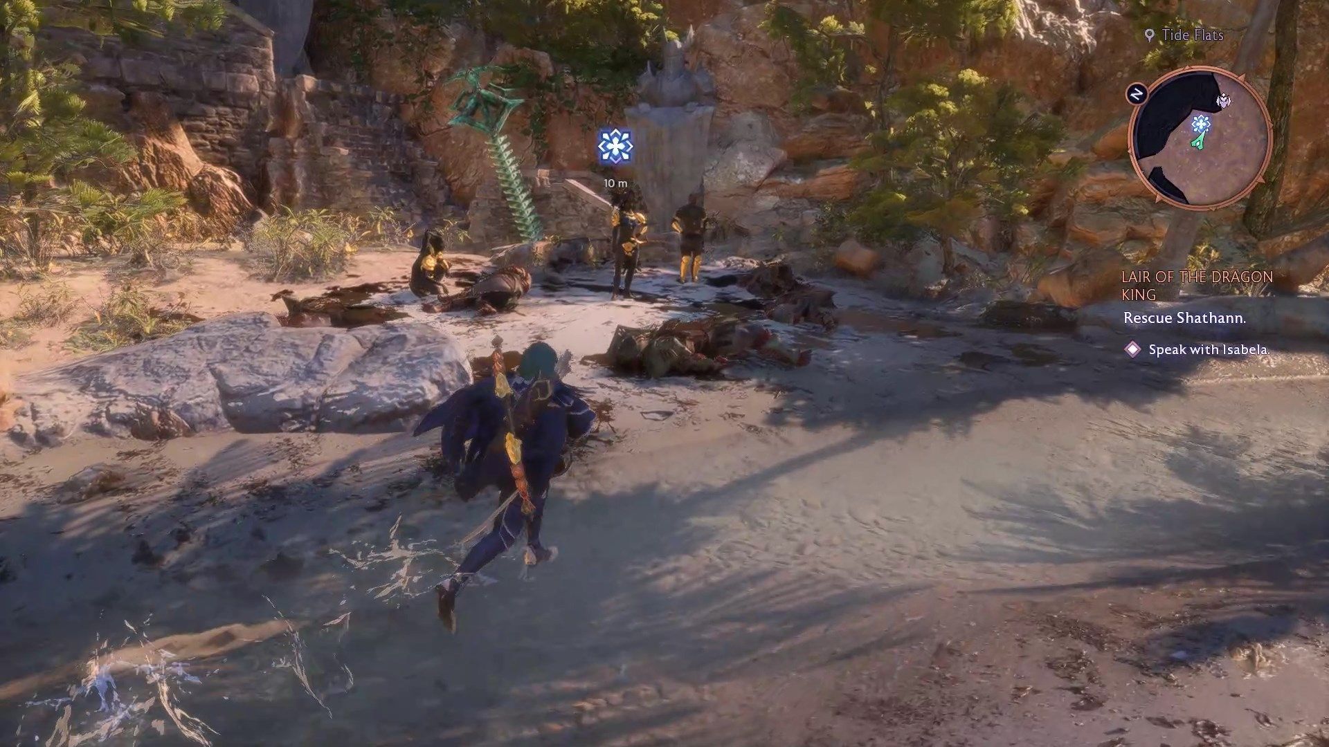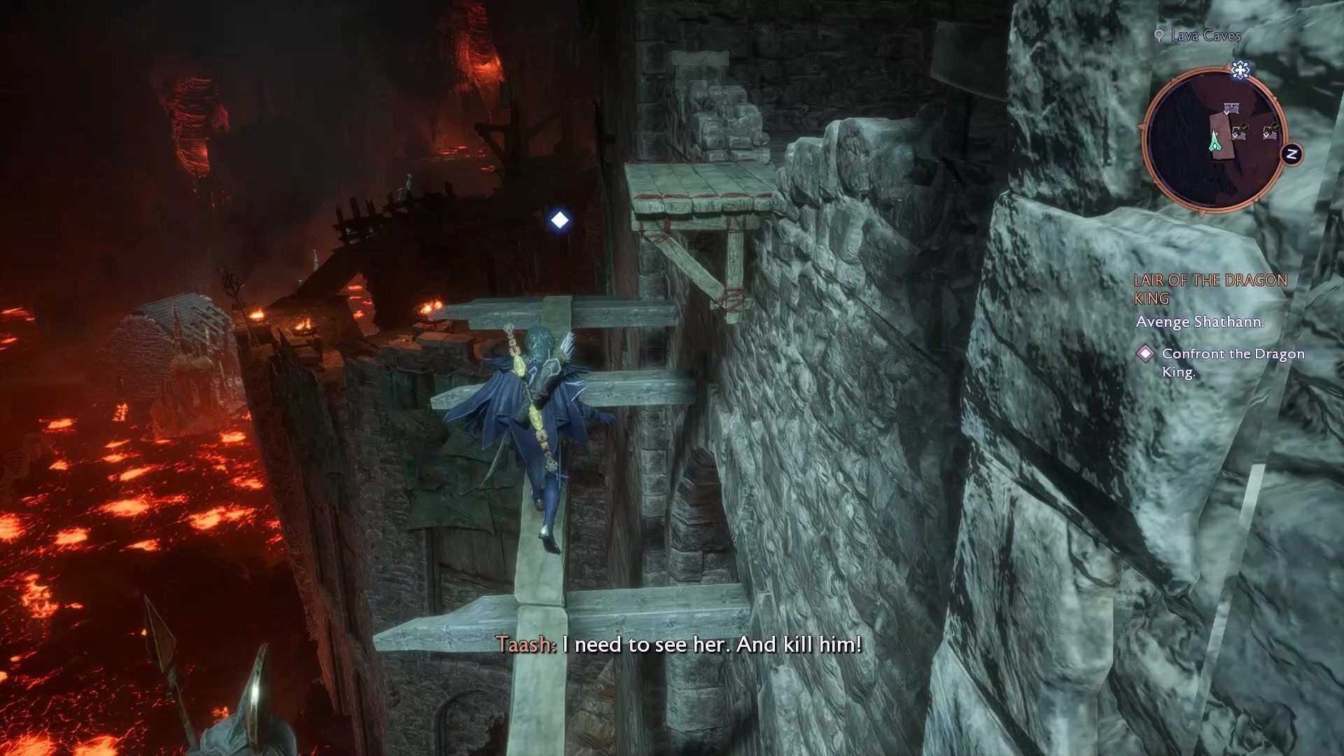 Po pokonaniu Cuttera dalszą drogę odblokujecie każąc Taash stopić blokujące ścieżkę kryształy, przechodząc za nie i zapalając znajdującą się niedaleko artylerię. To zniszczy kamienną ścianę i pozwoli wam przejść dalej. Gdy dotrzecie na balkon, zobaczycie cutscenkę z udziałem matki Taash i Smoczego Króla.