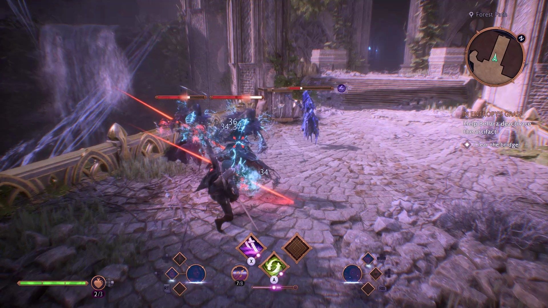 Gdy tylko przejdziecie przez eluvian do lasu Arlathan traficie na Skaczących przez Zasłonę. Po szybkiej rozmowie poznacie wasz następny cel - musicie znaleźć Bellarę, jedną z ich członków. Towarzyszka, z którą poszliście obalić statuę w zadaniu Koniec początku - Neve lub Harding - tymczasowo opuści tu drużynę. Powróci do was niedługo, na początku rozdziału trzeciego.