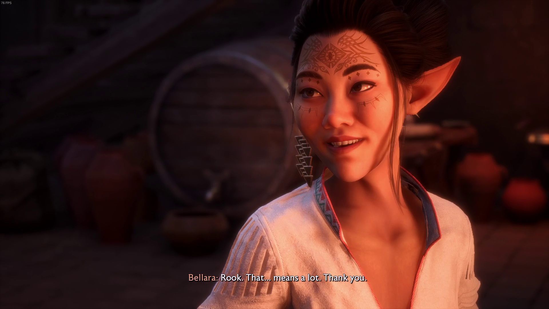 Bellara to entuzjastyczna badaczka dawnej elfickiej technologii. Sprzymierzona jest z frakcją Skoczków za Zasłonę. Pozytywnie reaguje na: