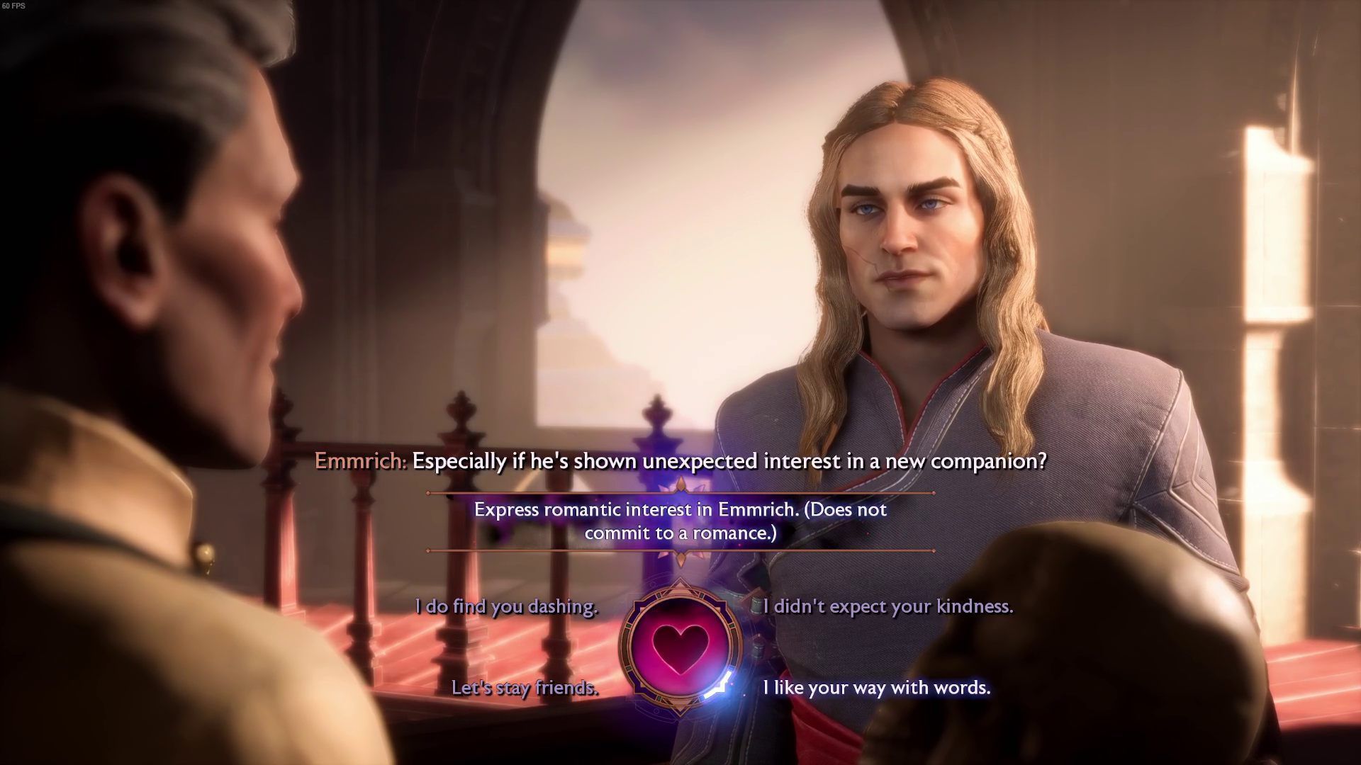 Jeżeli często będziecie zabierać nekromantę na misje, a także będziecie wybierać romansowe opcje dialogowe, to pierwszy poważniejsza opcja miłosna pojawi się już w okolicach trzeciej misji wątku Emmericha.