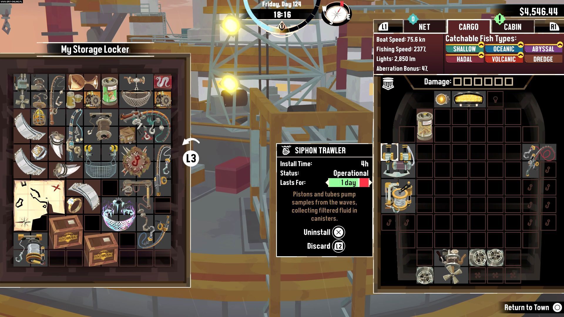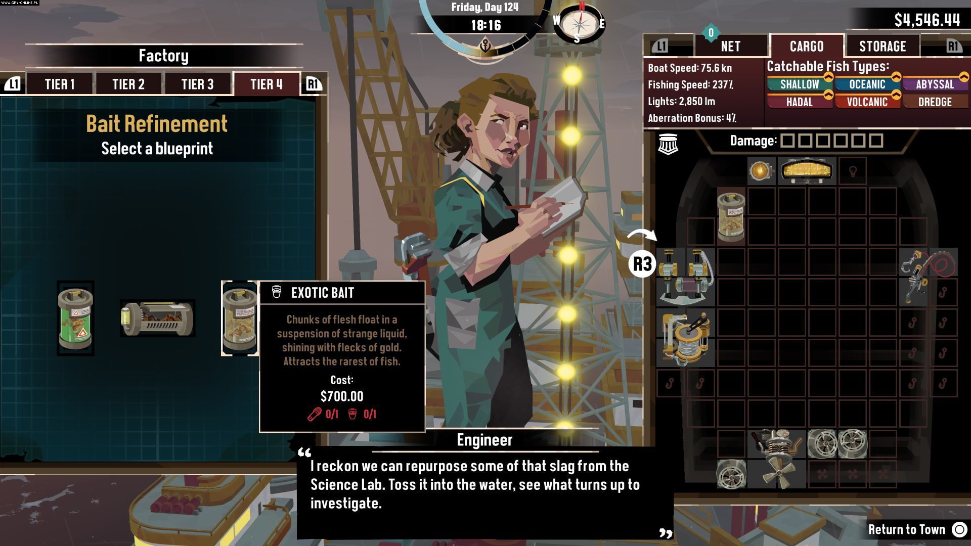- W innych zakładkach znajdziecie m.in. silniki, oświetlenie czy materiały do craftingu. W ostatniej zakładce mogą też pojawić się przydatne przynęty oraz komponenty badawcze.