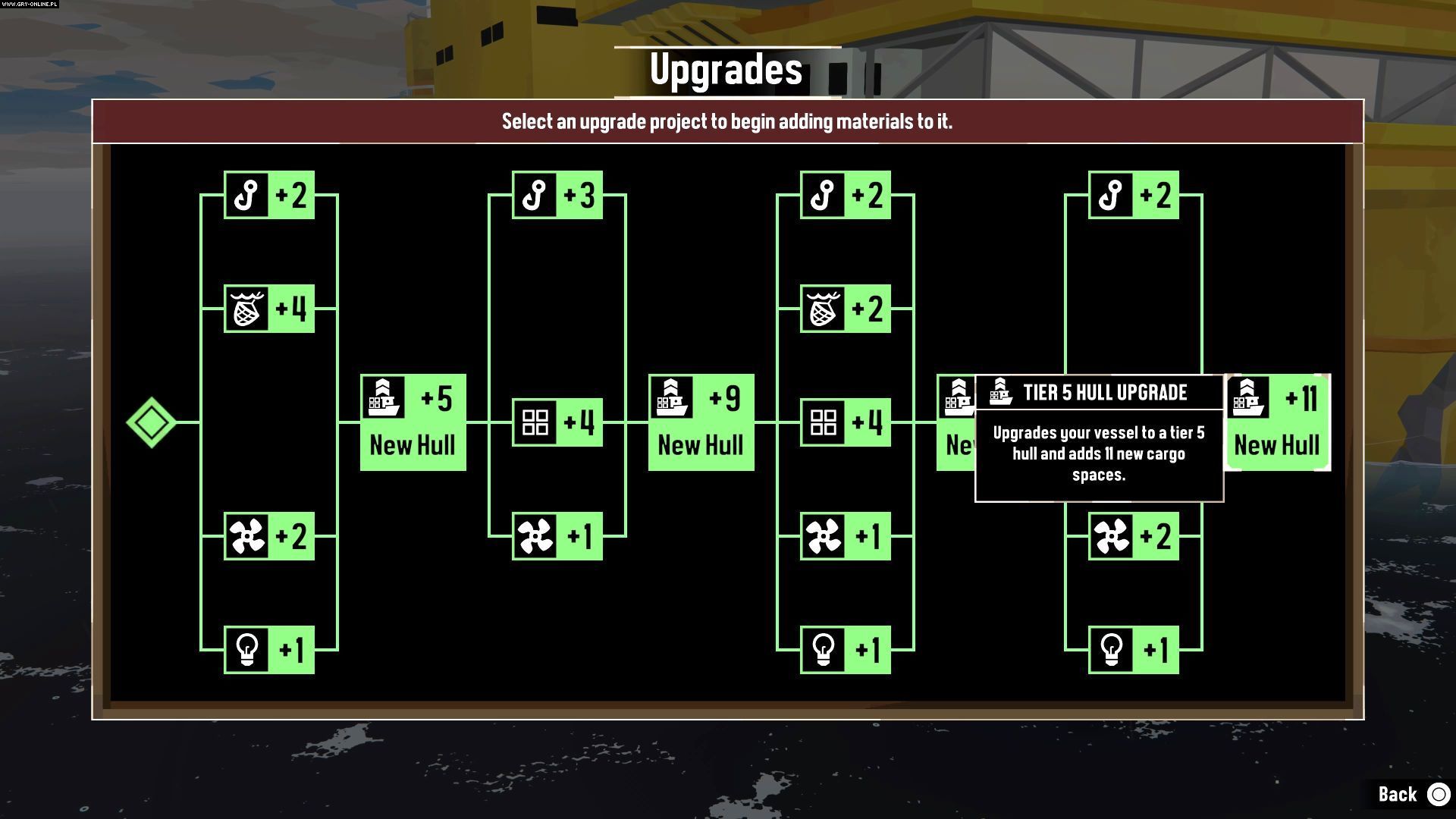 Pamiętajcie o gromadzeniu skrzyń żelazoportu, bo to one są składnikiem wszystkich ulepszeń (1 lub 2 skrzynie w zależności od projektu rozbudowy). W razie braku skrzyń trzeba przeznaczyć dodatkowy czas na pozyskanie kolejnych.