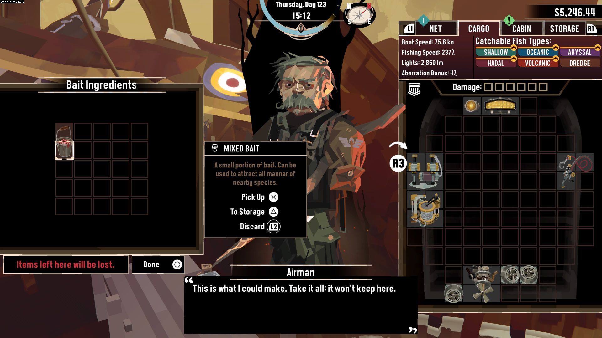 Oprócz dużej ilości gotówki potrzebna Wam będzie m.in. zwykła przynęta, którą oferuje lotnik z regionu Złowrogie namorzyny (powyższy obrazek).