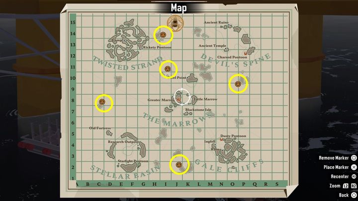 Skrzynie najłatwiej odnajdywać w łowiskach oznaczonych na mapie ikoną platformy - zaznaczyliśmy je na dołączonym obrazku.