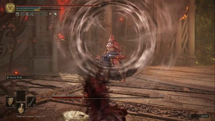 - W drugiej fazie przeciwnik staje się bardziej agresywny i szybszy, dlatego dobrze dysponować szybką bronią o stosunkowo dużym zasięgu. Katana Księżycowy woal (Moonveil) albo Rzeki krwi (Rivers of Blood) może się okazać niezastąpiona.