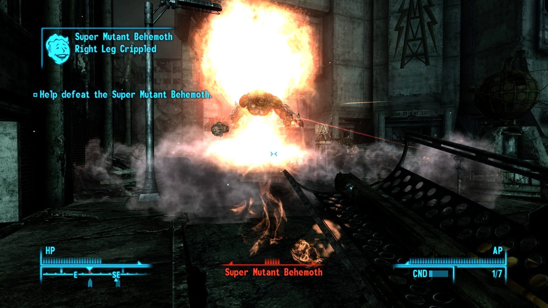 - Niedaleko budynku GRN spotkacie przyjaźnie nastawionych rycerzy Bractwa Stali - warto za nimi podążać i wykorzystywać to, że mogą eliminować za Was kolejnych wrogów. Badajcie ciała pokonanych przeciwników żeby zebrać jeszcze więcej lootu. Przed budynkiem stacji radiowej czeka Was starcie z behemotem, ale i tu nie musicie obawiać się gigantycznych kłopotów. Możecie odebrać potężną broń Grubas (Fat Man) jednemu z poległych rycerzy - strzela ona miniatomówkami, które mogą łatwo pokonać nie tylko behemota, ale też wielu innych silnych wrogów. Dodatkowo jest to okazja do pozyskania pierwszych egzemplarzy pancerza wspomaganego.