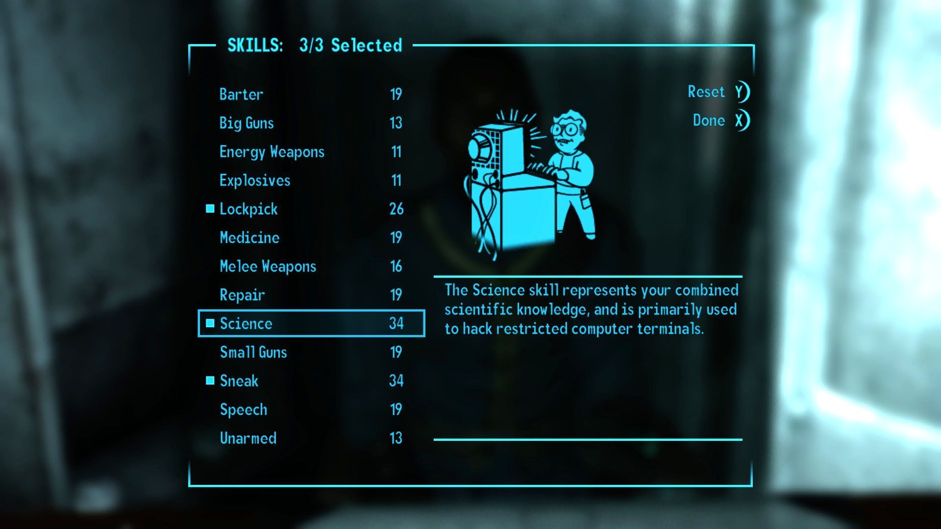Pamiętajmy, że nie zależne od postaci, stylu grania (VAST czy FPP) Nauki Ścisłe, Otwieranie Zamków, Naprawy i Retoryka są ZAWSZE przydatne.