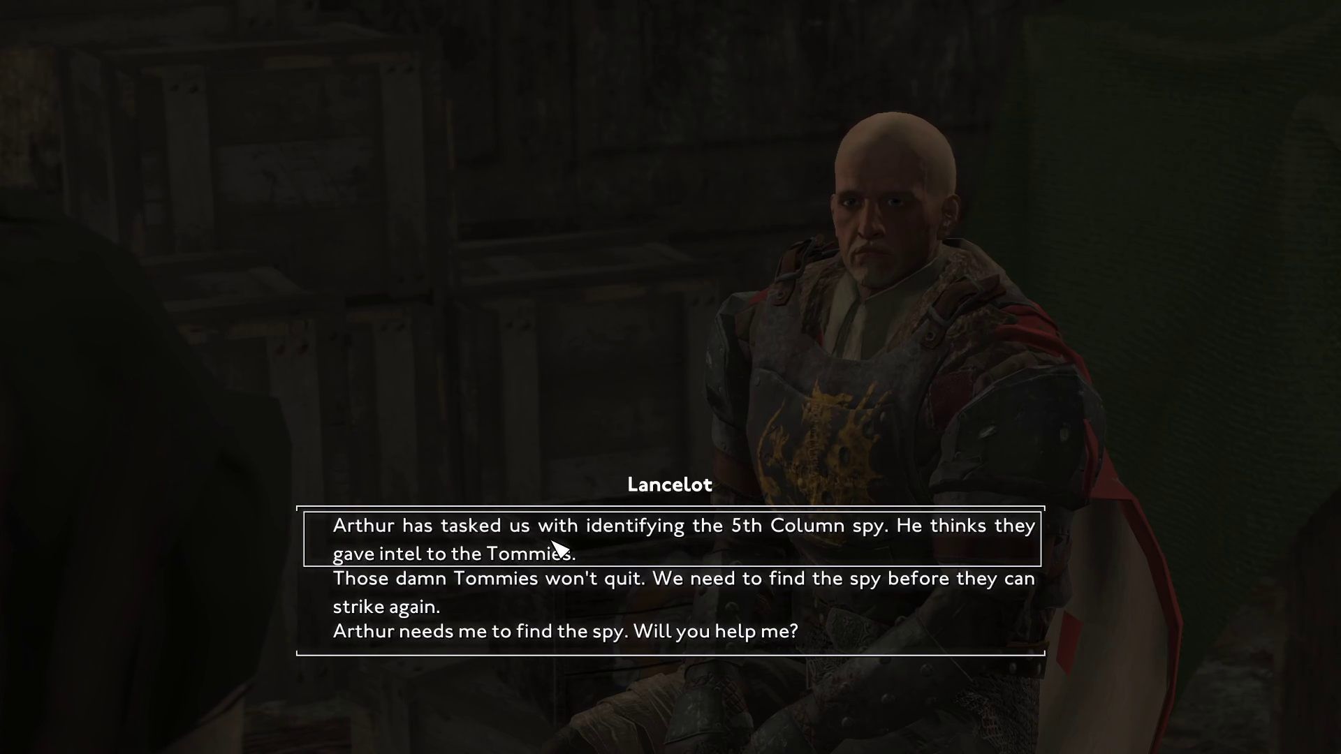 W misji Knight of the Cart Waszym zadaniem będzie odnalezienie szpiega, który ukrywa się w szeregach Camelotu. Z tej strony poradnika dowiecie się jak wydobyć informacje od rannych żołnierzy oraz jak nakłonić szpiega do ujawnienia się.