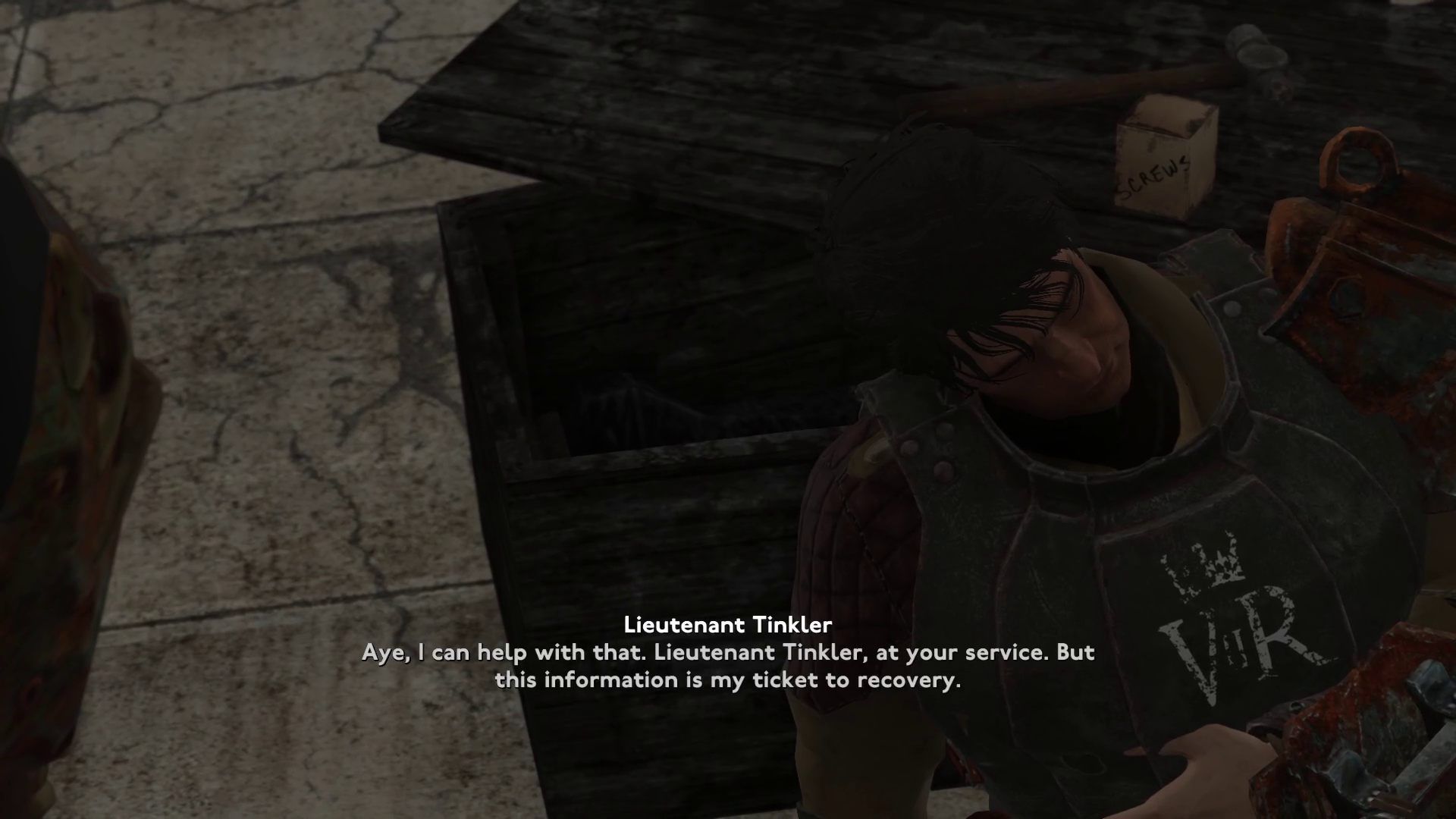 Wyjdźcie na zewnątrz i skierujcie się do namiotu. Odszukajcie porucznika Tinglera. Rozpoznacie go po zbroi.
