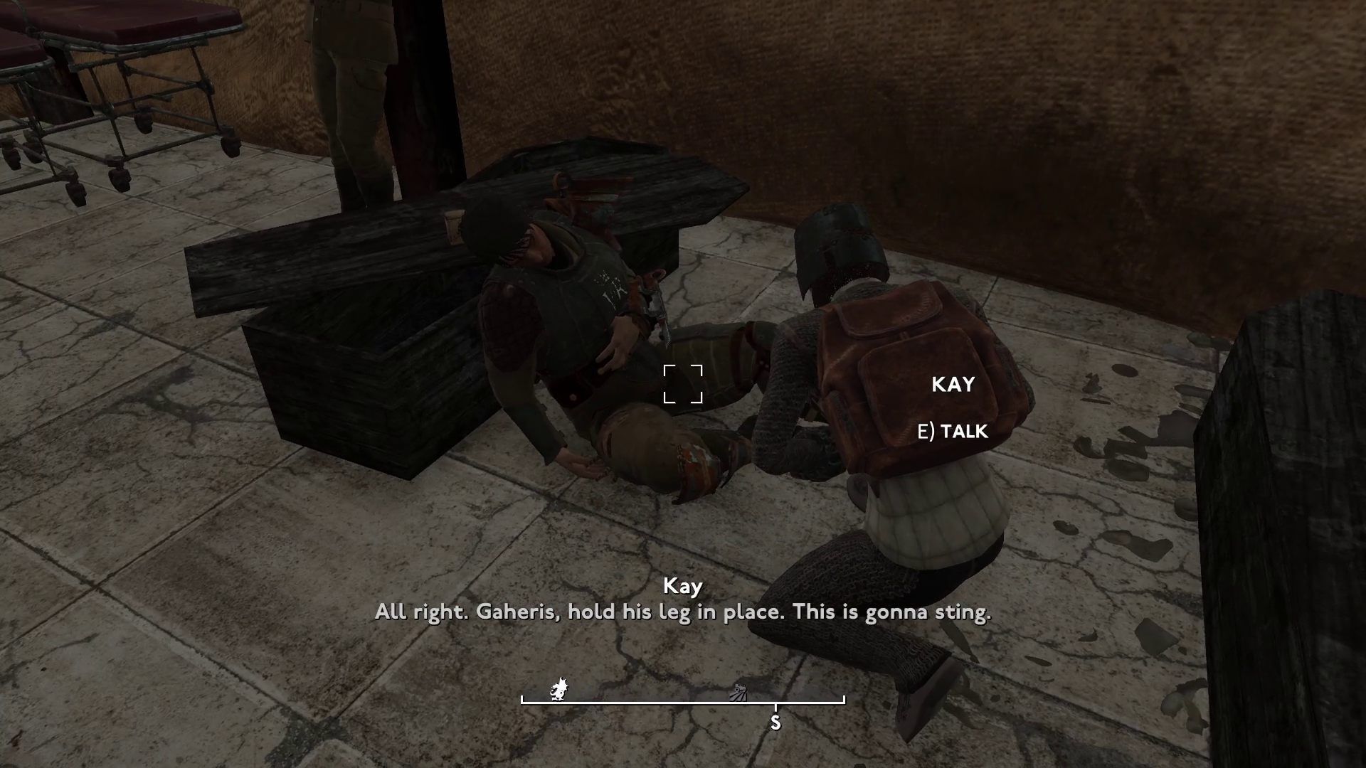 Udajcie się do pokoju medycznego (poziom -1) i porozmawiajcie z Kay. Wróćcie wraz z nią do namiotu pełnego rannych żołnierzy.