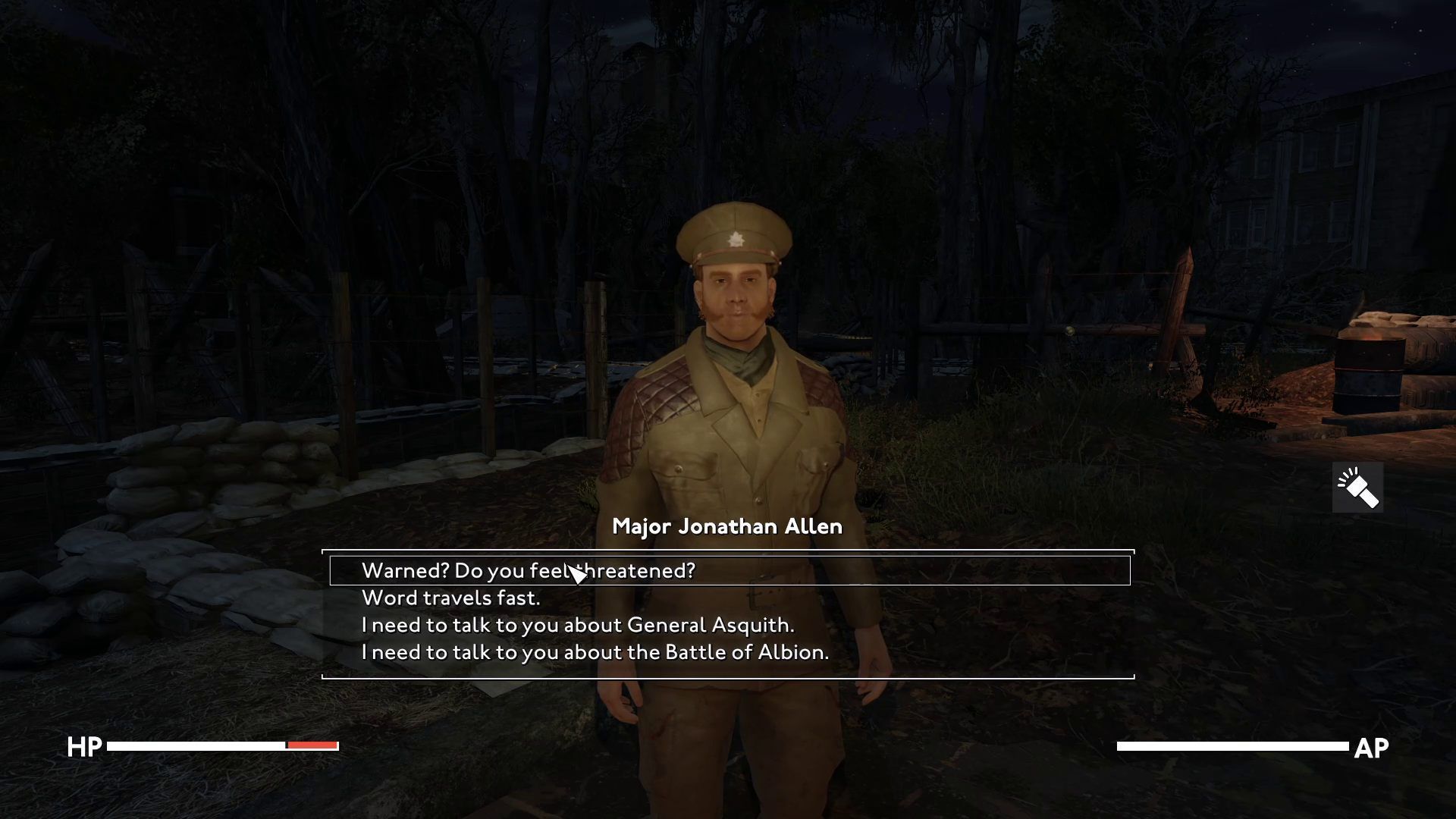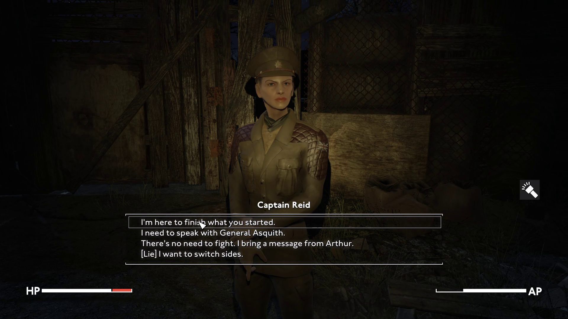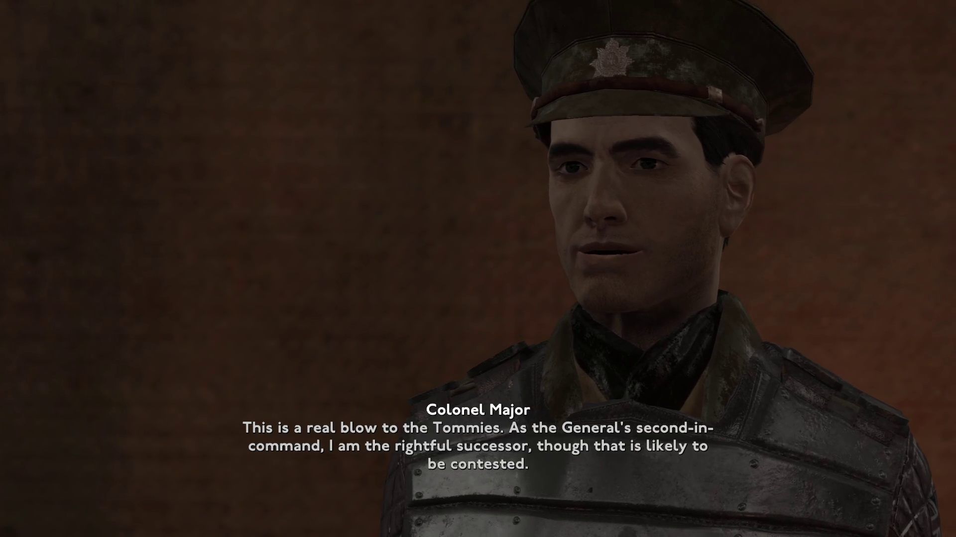 Zamiast Generała spotkacie tam Pułkownika, który wyjawi Wam, że Generał Asquith zaginął po bitwie o Albion. W czasie rozmowy wyraźcie chęć zawarcia sojuszu pomiędzy frakcjami. To może być jednak dość trudne z uwagi na chwilowy brak dowódcy wśród Tommies.