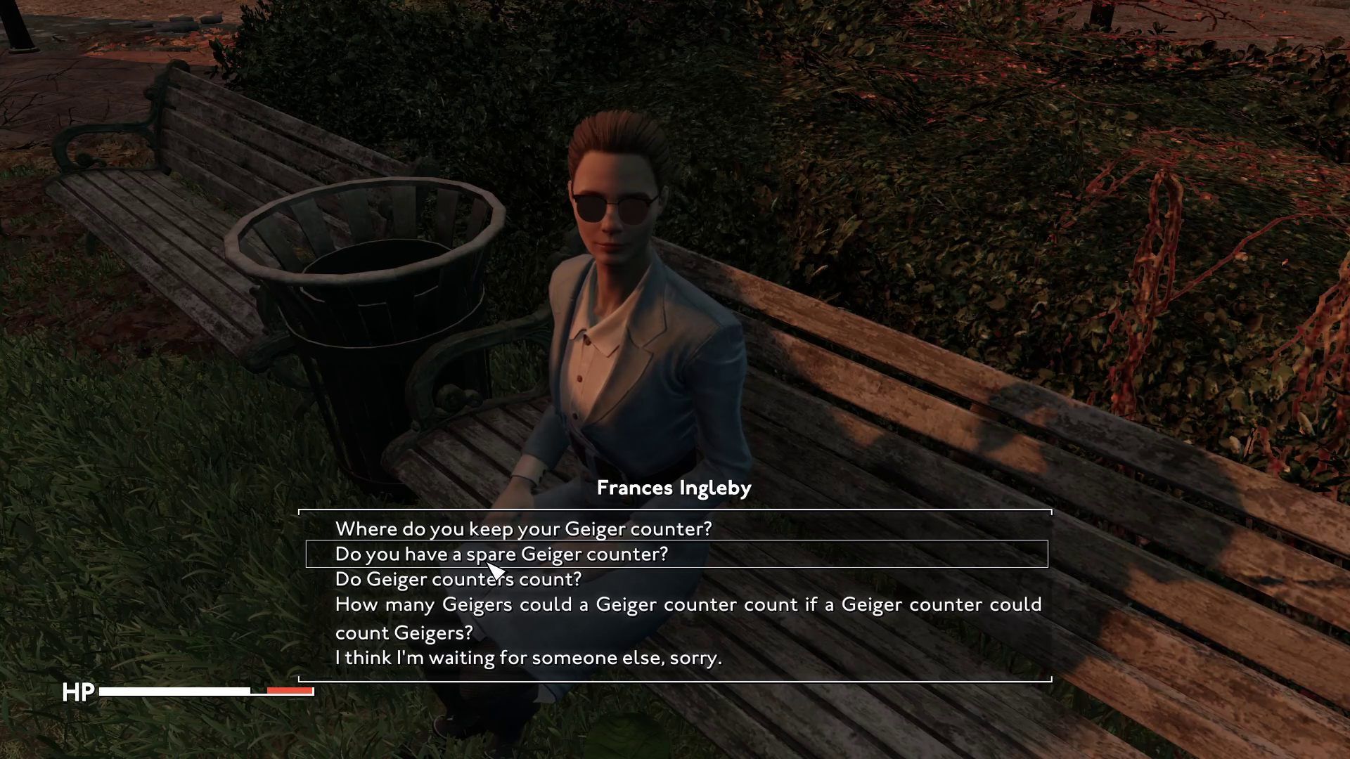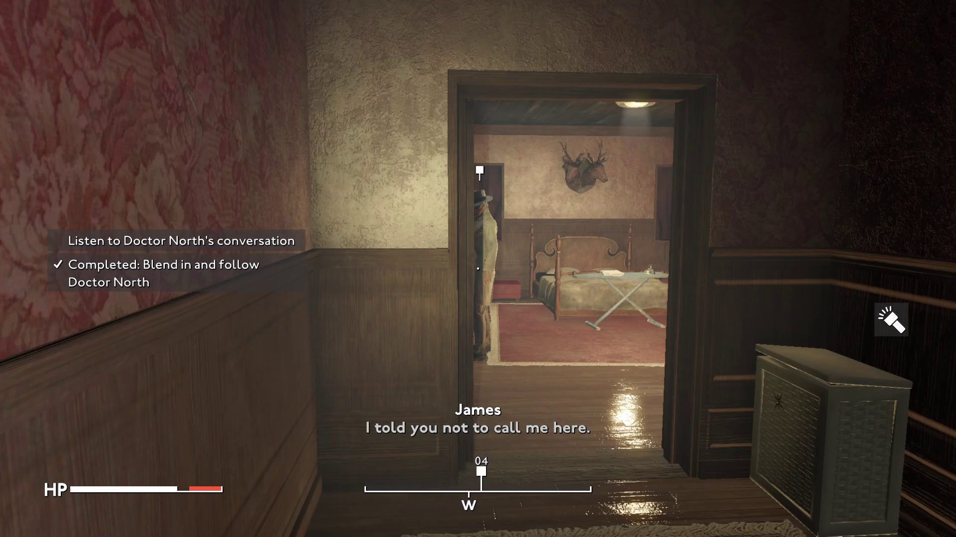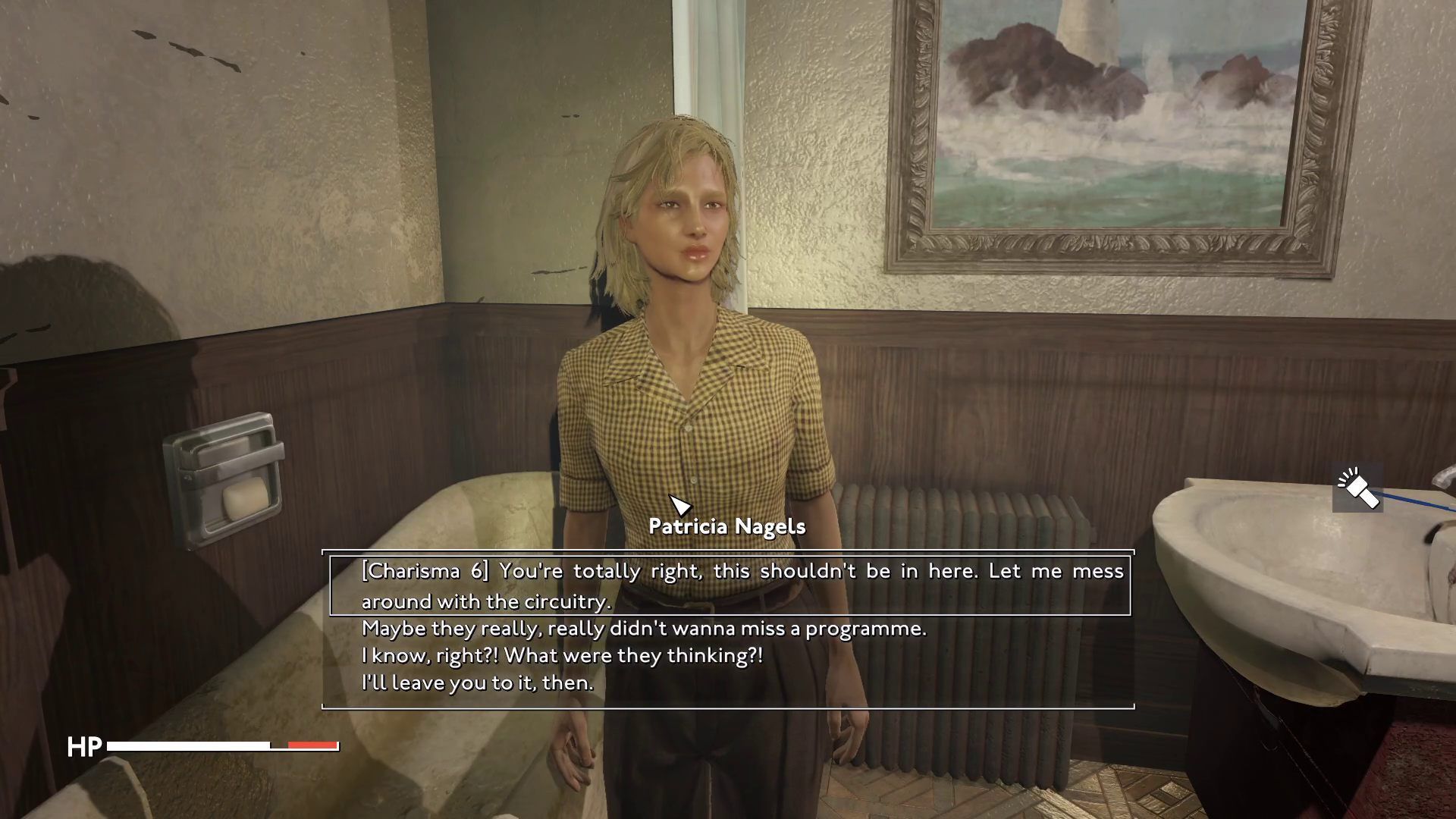 - Udajcie się za Doktorem North na piętro. Porozmawiajcie z kobietą stojącą w toalecie. By założyć podsłuch będziecie potrzebować 6 punktów charyzmy.
