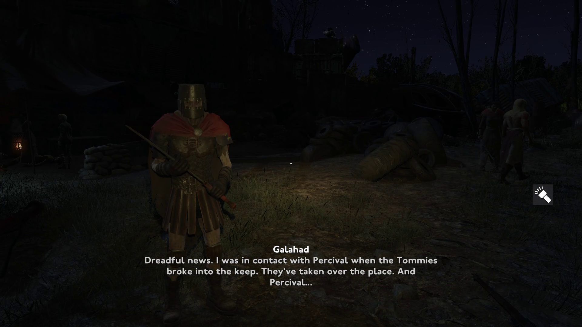 Porozmawiajcie z Galahadem. Rycerz przekaże Wam, że Tommies przedarli się do budynku, Szybko ruszcie do środka.
