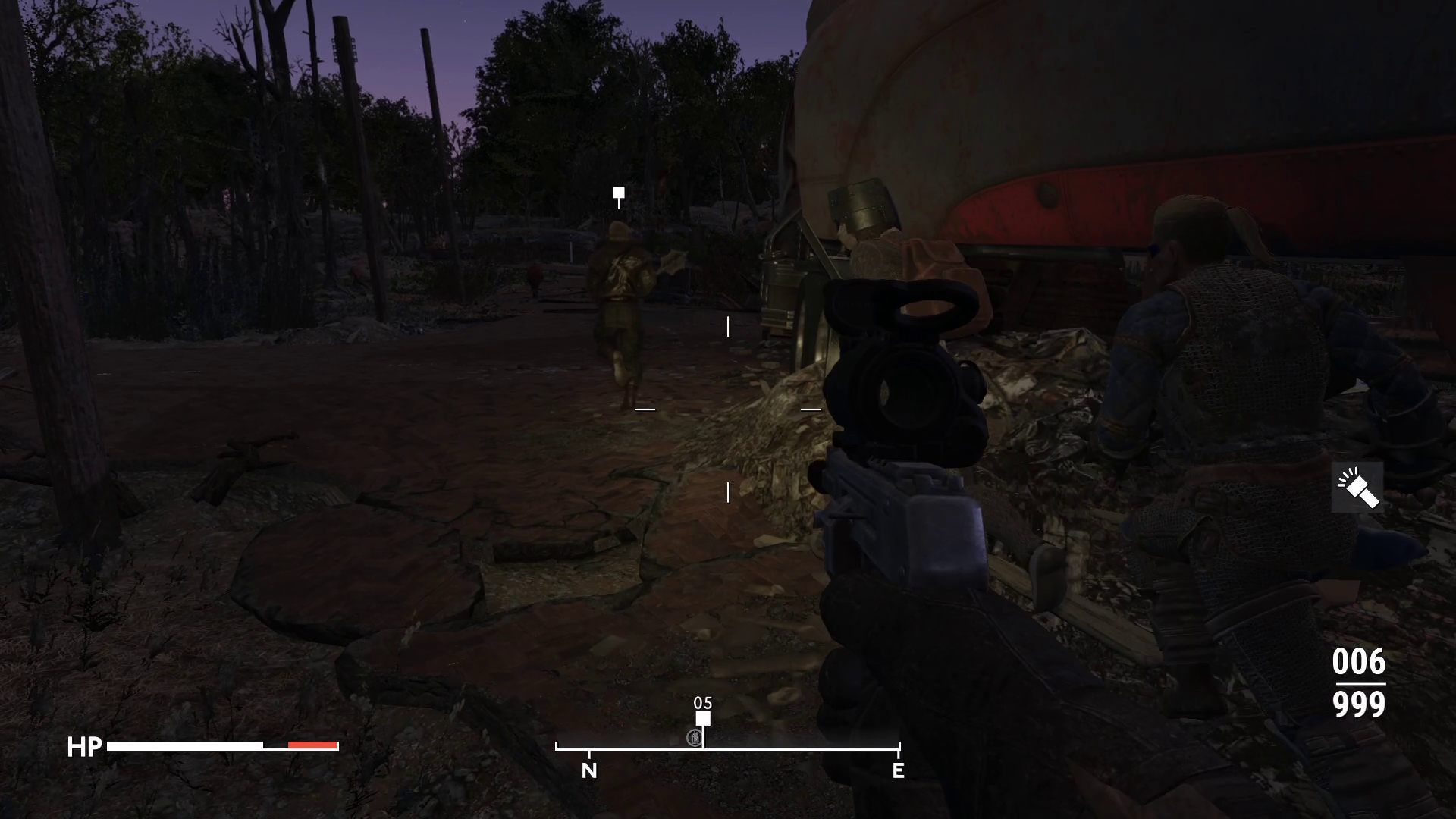 Pokonajcie pierwszy oddział żołnierzy. Uważajcie, żeby przypadkowo nie zrobić krzywdy swoim sojusznikom. W chaosie bitwy bardzo przydatny będzie system VATS.