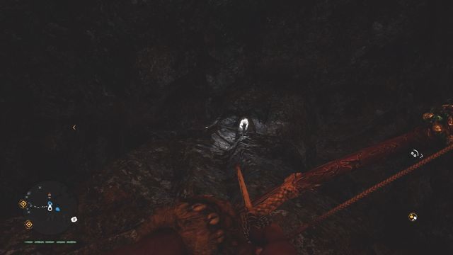 Zaraz po wejściu do jaskini spuść się na dół i użyj wzroku łowcy, aby wypatrzeć wspomniane ślady stóp. Idź za nimi do momentu, aż z niewielkiego przejścia będziesz mógł zauważyć znajdujący się po drugiej stronie rysunek skalny (aby obejrzeć malowidło musisz się nieco cofnąć, natomiast ślady stop prowadzą dalej do Ręki Daiszy).