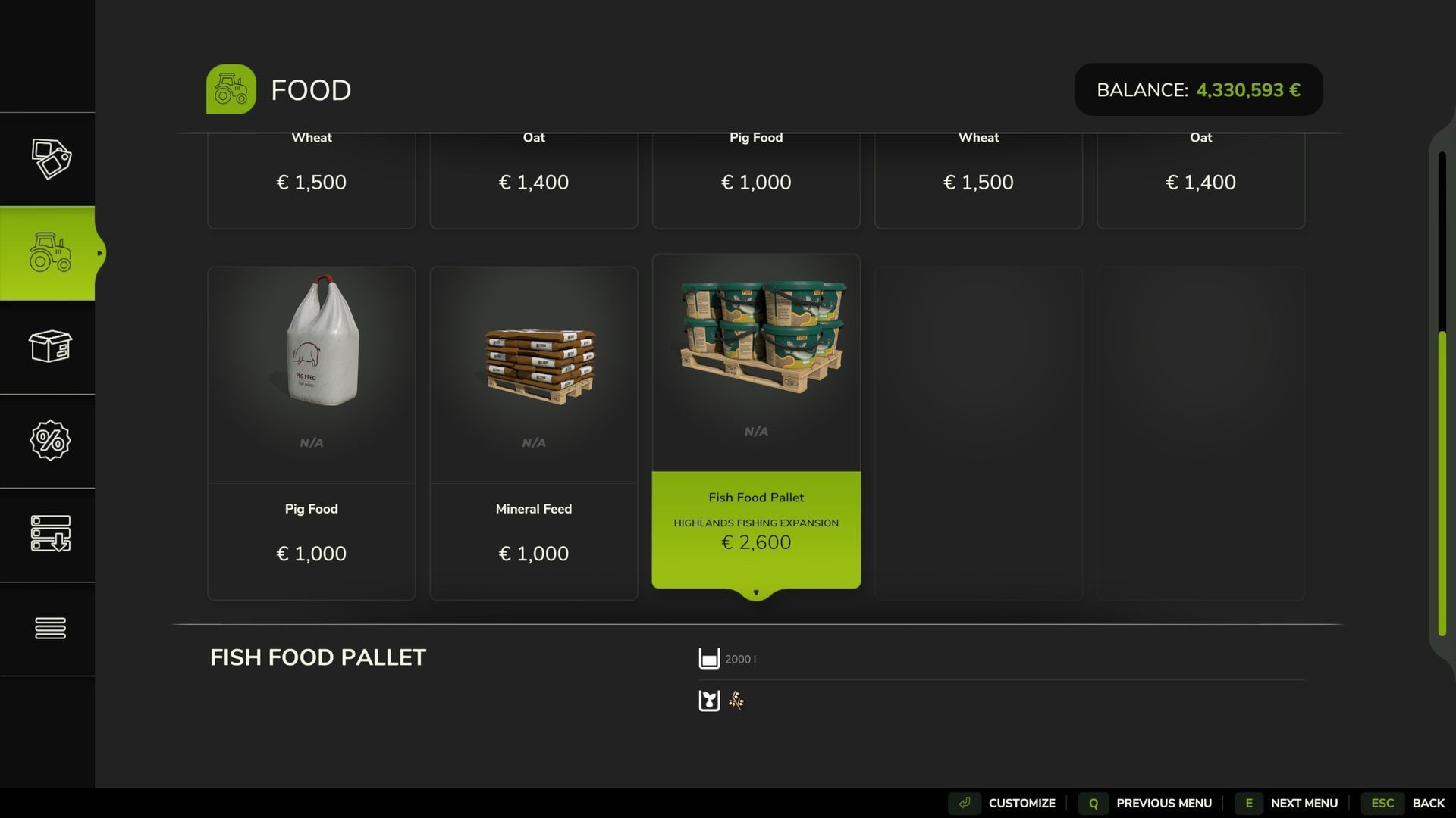 - Kupić paletę gotowego pokarmu - znajdziecie ją w sklepie z pojazdami, w kategorii Zwierzęta, pod zakładką Pasze. Jedna paleta jedzenia kosztuje 2600 Euro.