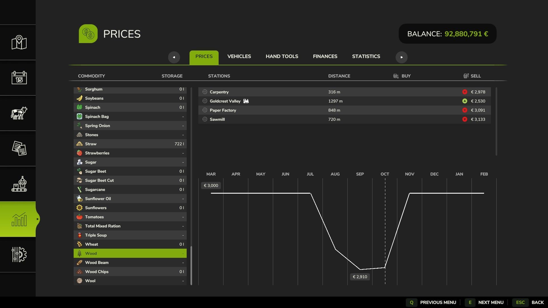 Drzewa nie rosną wedle kalendarzu okresowego, możecie więc sadzić je w dowolnym miesiącu. Zrębki najlepiej sprzedawać w styczniu - są one wtedy warte aż 1,600 euro za tonę, ponad trzykrotnie więcej niż w cieplejsze miesiące. Ceny drewna są w dużej mierze stałe i nie wahają się bardzo zależnie od miesiąca - sprzedacie je za około 3,000 euro za tonę. Jeśli wzbogacicie się na tyle by samemu zakupić tartak, możecie przerabiać tam drewno na znacznie cenniejsze przedmioty, takie jak deski, belki i meble.