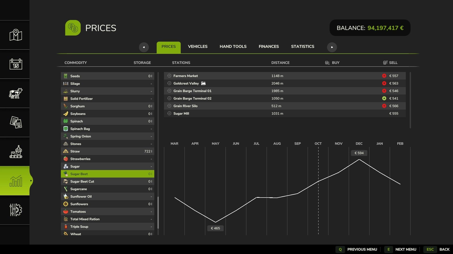 Buraki cukrowe najlepiej sprzedawać w grudniu. Są one wtedy warte około 594 euro za tonę. Ścinki buraczane są natomiast warte około 765 euro za tonę. Po zdobyciu większej ilości funduszy możecie również zbudować fabryki, w których buraki oraz ścinki można przerabiać na cenniejsze przedmioty: