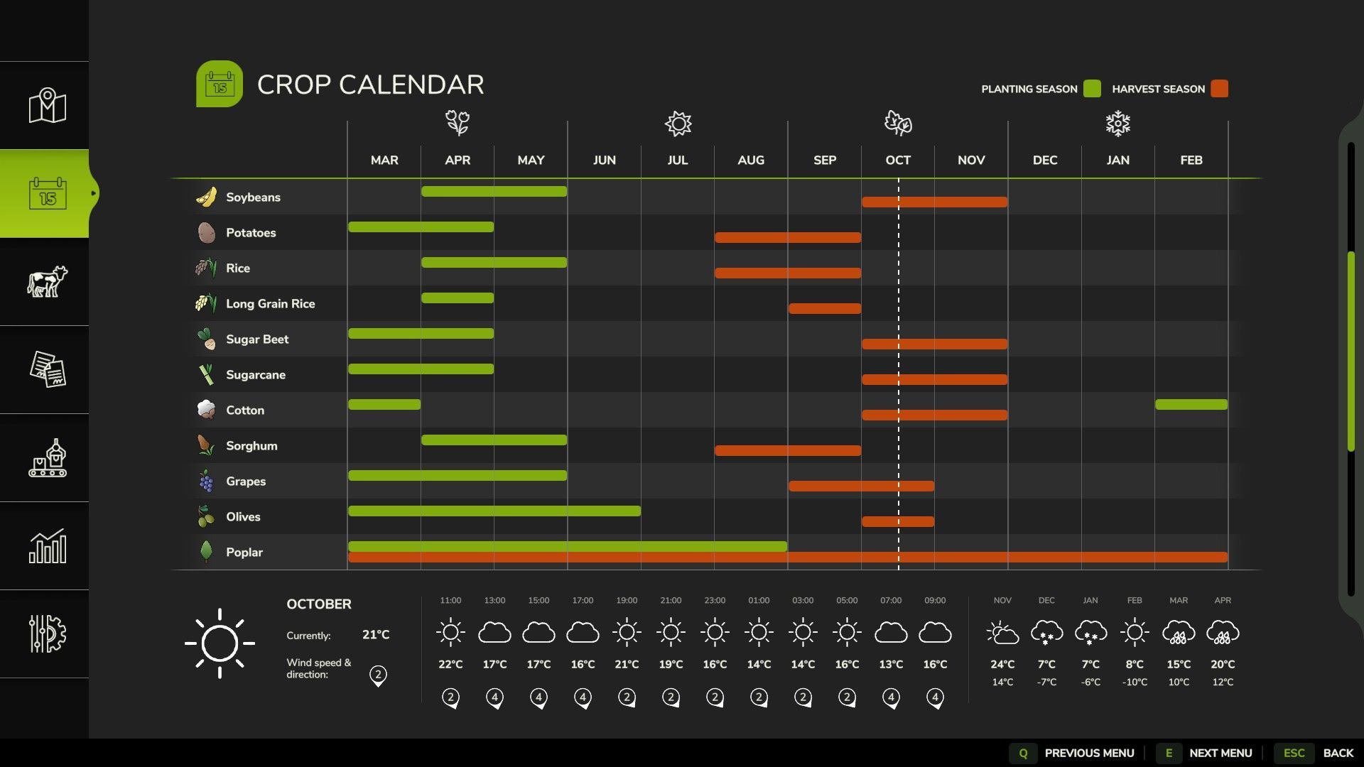 Ryż długoziarnisty sadzić można w kwietniu, a zbierać we wrześniu. Najlepiej sprzedawać go w okresie od lipca do października - jest wtedy warty około 1,600 euro za tonę. Możecie go też przerabiać jednak na wiele innych produktów, które są albo więcej warte, albo można używać ich w łańcuchach produkcyjnych. Są to na przykład pakowany ryż w przetwórni jedzenia lub mąka ryżowa w młynie.