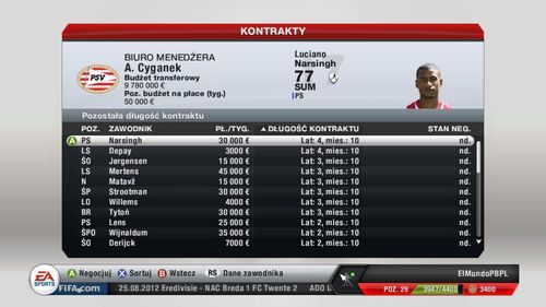 W panelu kontraktów możesz renegocjować lub rozwiązywać umowy z poszczególnymi zawodnikami. Pamiętaj o możliwych odszkodowaniach z tytułu zakończenia kontraktu!