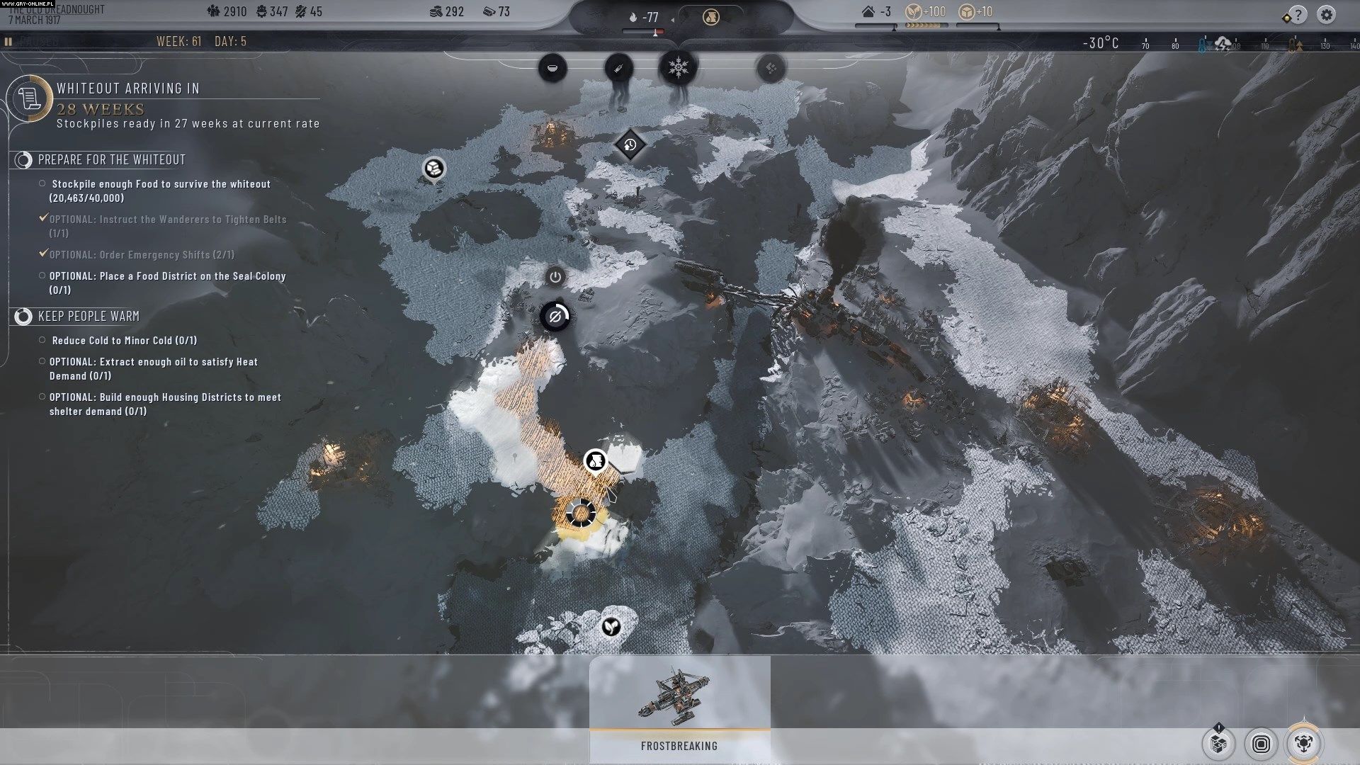 Przełamywanie lodu jest kluczową mechaniką gry. Większość pól na mapie jest dla was początkowo niedostępna i pokryta lodem. By móc odblokować możliwość budowania na tych polach musicie najpierw potraktować je lodołamaczem. Akcja przełamywania lodu kosztuje nieco ciepłowników i wymaga pewnej ilości siły roboczej. Każdy lodołamacz może przełamać osiem sąsiadujących pól naraz - warto więc to robić w wolnych chwilach by odblokowywać więcej miejsca na nowe dzielnice i rozbudowywanie obecnych.