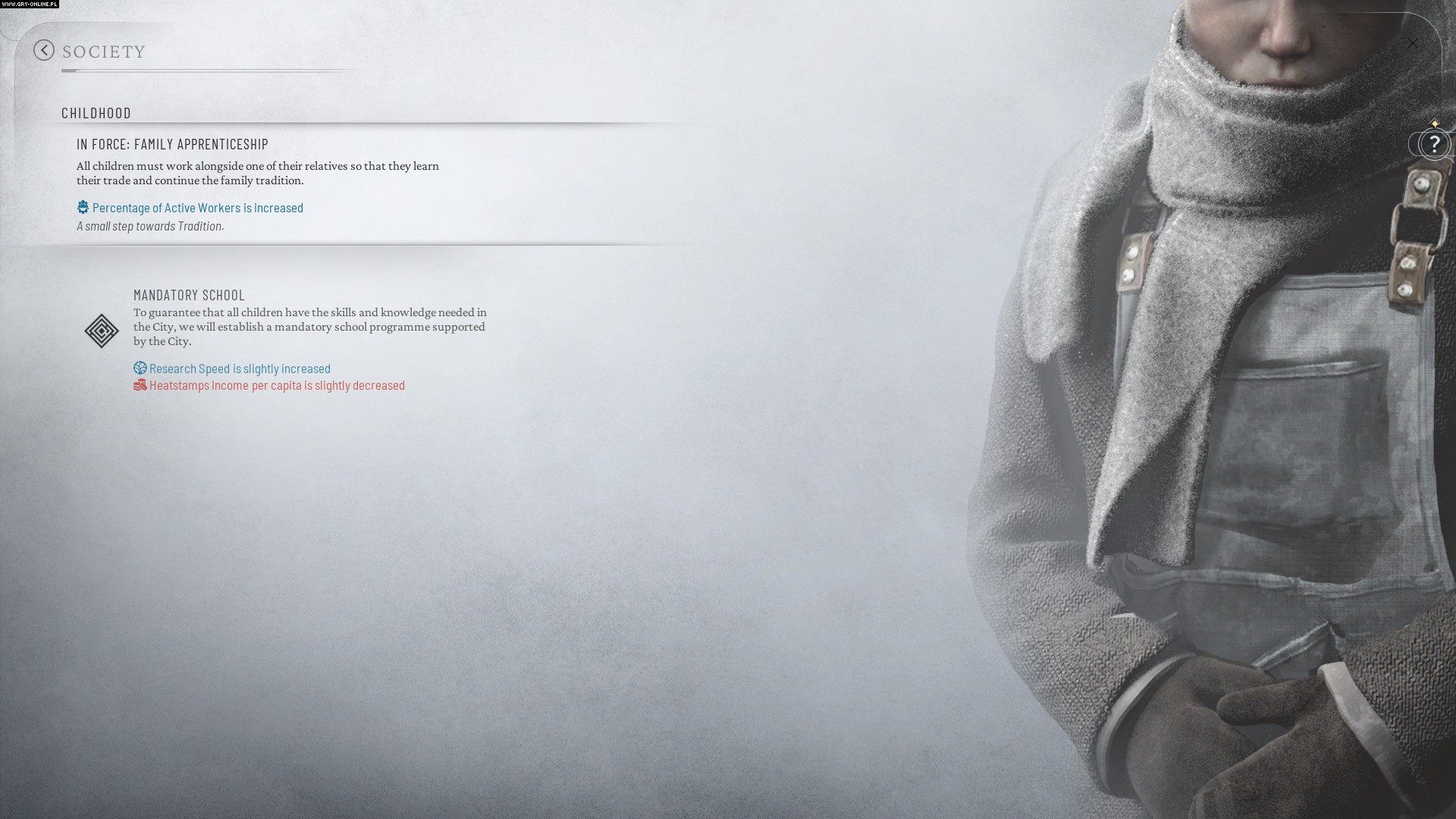 Innym sposobem na zwiększenie liczby osób aktywnie pracujących, jest wysłanie dzieci na obowiązkowe szkolenia zawodowe. Możecie tego dokonać uchwalając ustawę o rodzinnych praktykach w zakładce "Społeczeństwo". Gdy na późniejszym etapie odsetek osób zdolnych do pracy się ustabilizuje, możecie rozważyć zmianę obowiązującego prawa na Obowiązkową edukację, która przyspieszy szybkość badań.