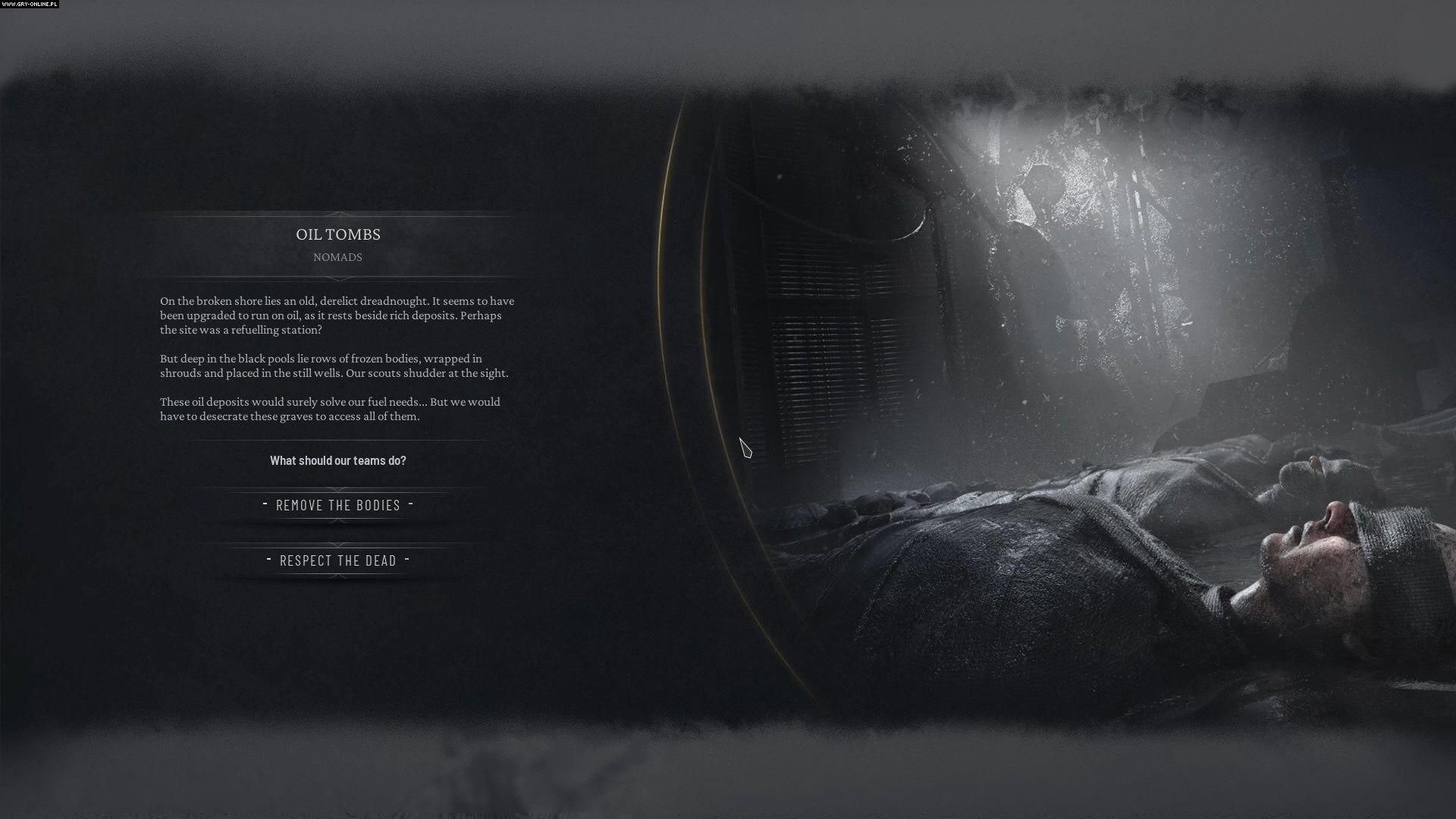 Po znalezieniu drednota będziecie musieli dokonać wyboru - znajdziecie kilka złóż ropy, lecz w jednym z nich pochowane są zwłoki ludzi, którzy kiedyś mieszkali przy drednocie. Musicie zdecydować czy zostawicie ten grób w spokoju czy pozbędziecie się zwłok by dostać się do ropy. Jeśli odmówicie, będziecie mieli do dyspozycji tylko dwa złoża zamiast trzech. Jeśli zniszczycie grób, będziecie mieli do dyspozycji trzy złoża, jednak ropa z grobu może zacząć rozprowadzać choroby. Wybór ostatecznie należy do was.