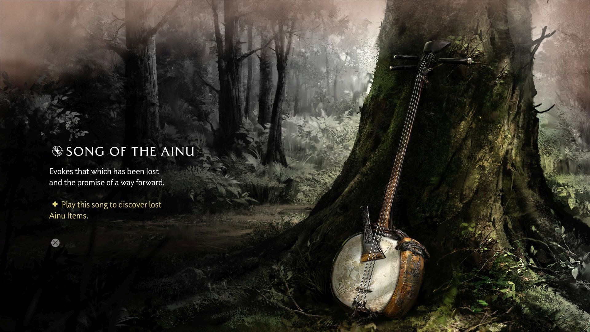 Pieśni to utwory do zagrania na instrumencie muzycznym shamisen. Ma to swoje praktyczne zastosowanie - wiatr może prowadzić bohaterkę do konkretnych typów lokacji (np. obozów przeciwnika) i ułatwiać czyszczenie mapy z sekretów.