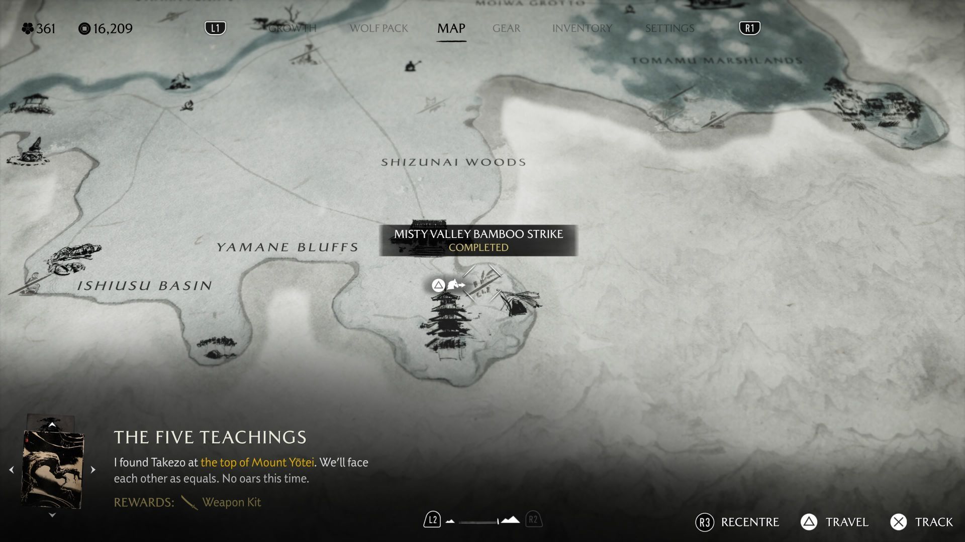 - Wejście do labiryntu znajduje się w północno-wschodniej części terenów posiadłości i ścieżka doprowadzi Atsu do Stojaka bambusowego w Mglistej Dolinie. Nie możecie od razu rozegrać mini-gry ze ścinania bambusów kataną. Zamiast tego trzeba najpierw rozwiązać łamigłówkę labiryntu.